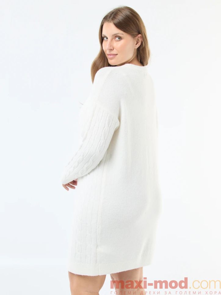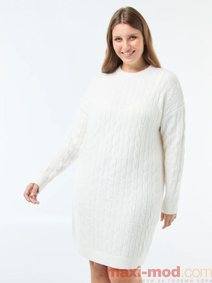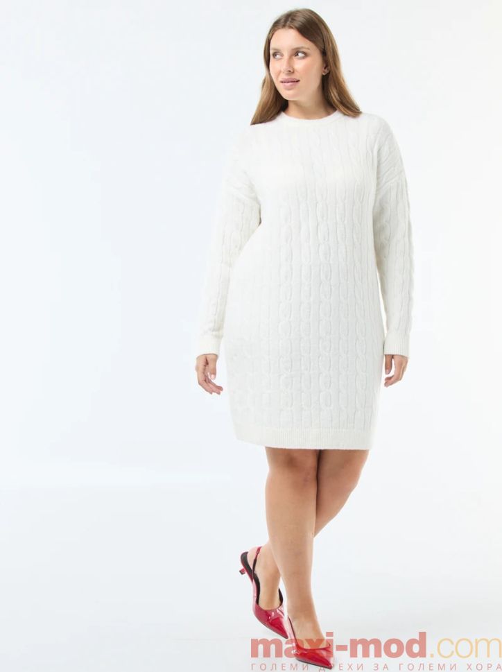 Плетена рокля с дължина над коляното. Подходяща за ежедневието и свободното време.