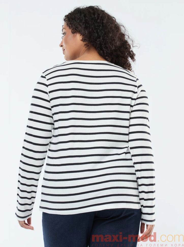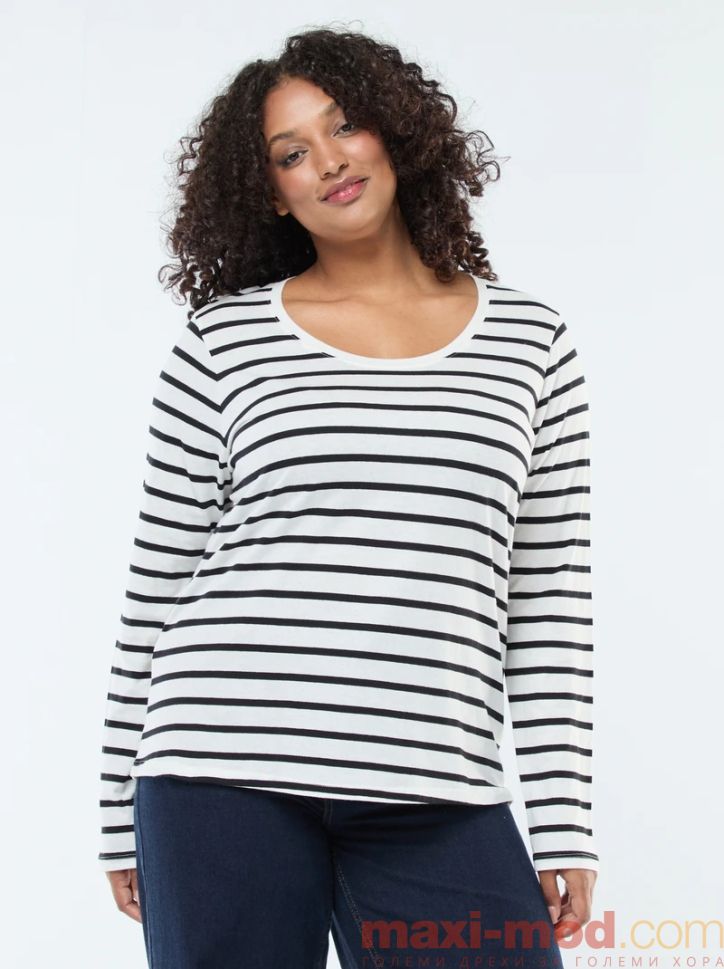 Голям размер тениска с дълъг ръкав от трико. Подходяща за ежедневието и свободното време.