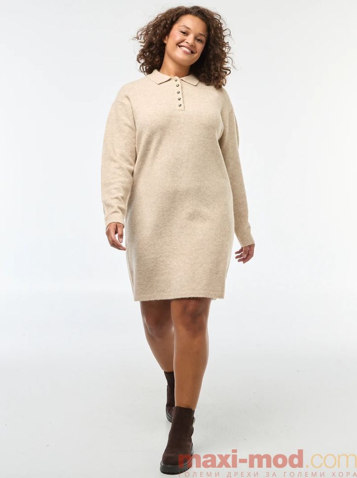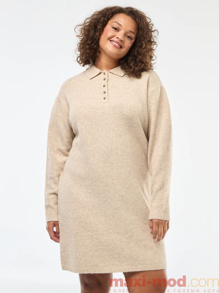 Плетена рокля със златни копчета . Подходяща за ежедневието и свободното време.