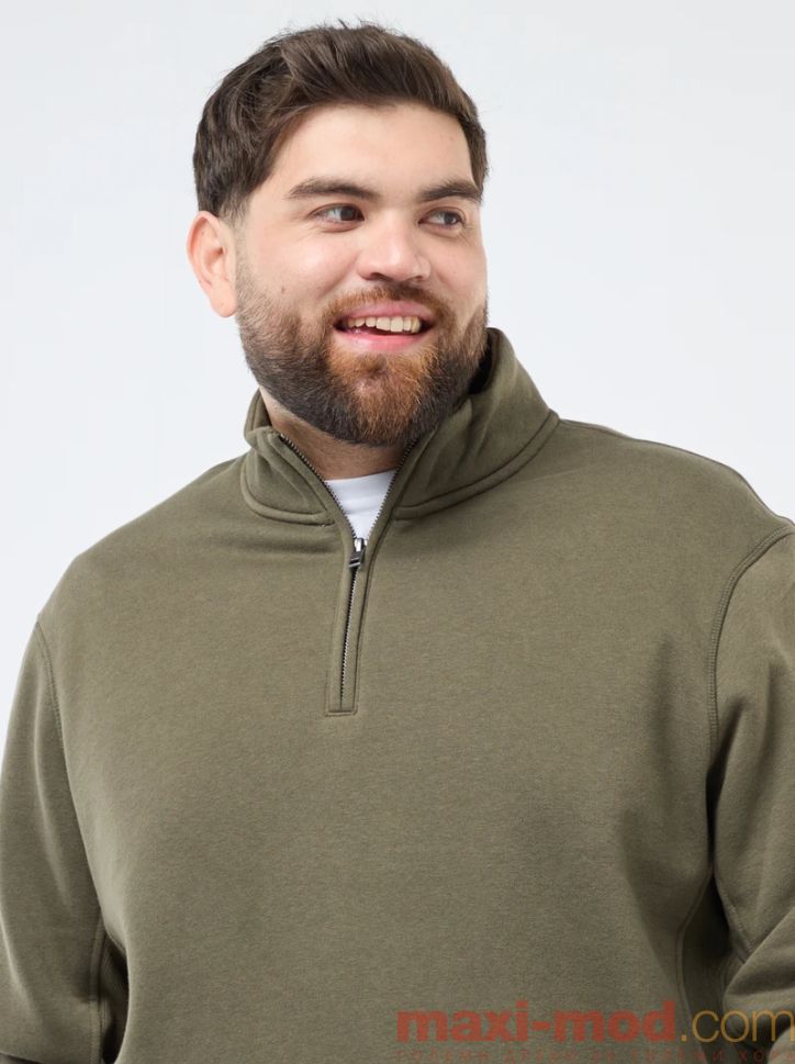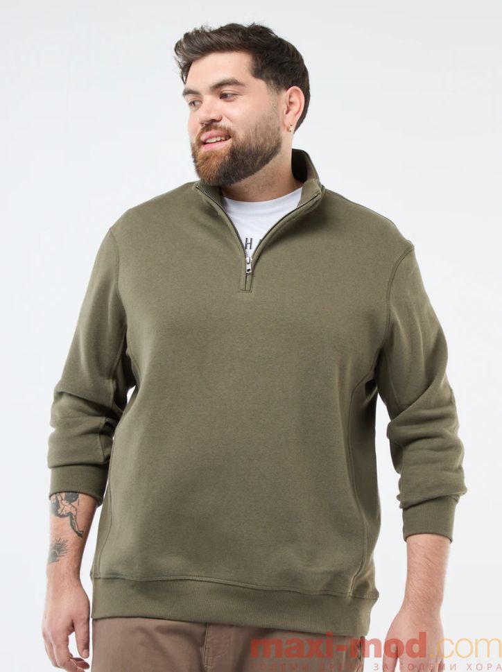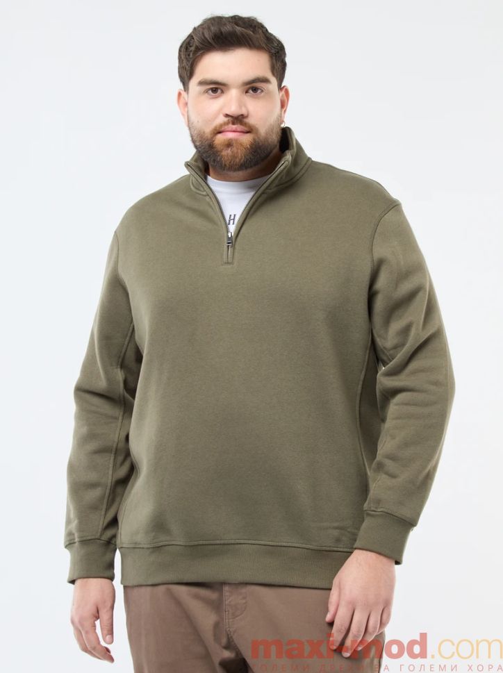 Голям размер мъжка блуза с висока яка с цип. Подходяща за ежедневието и свободното време.
