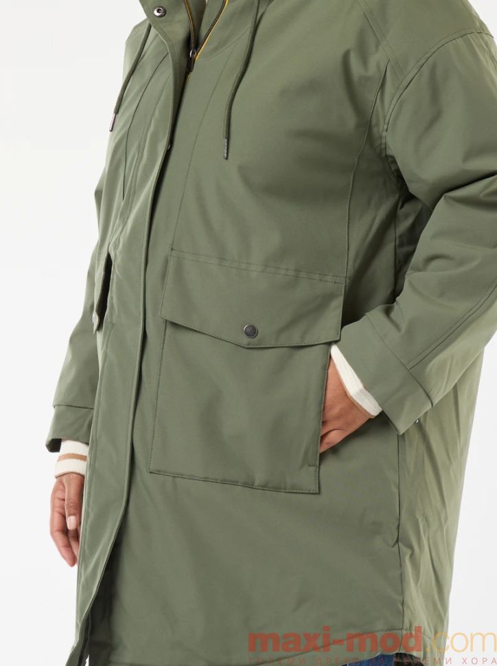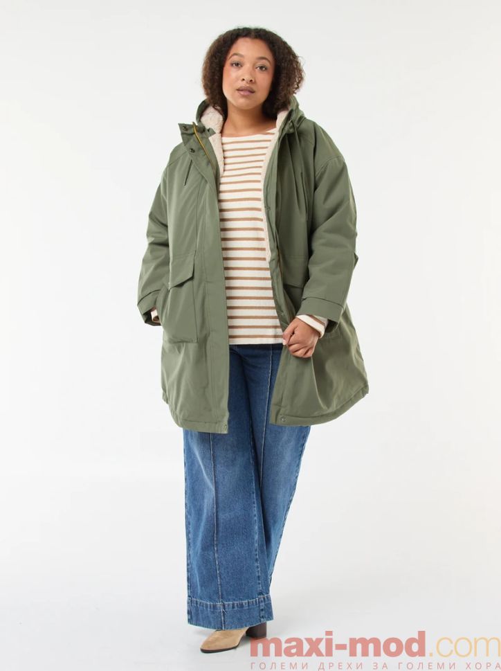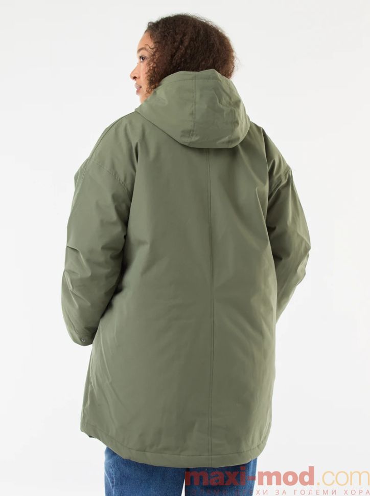 Голям размер дамска парка с подплата. Подходяща за ежедневието и свободното време.