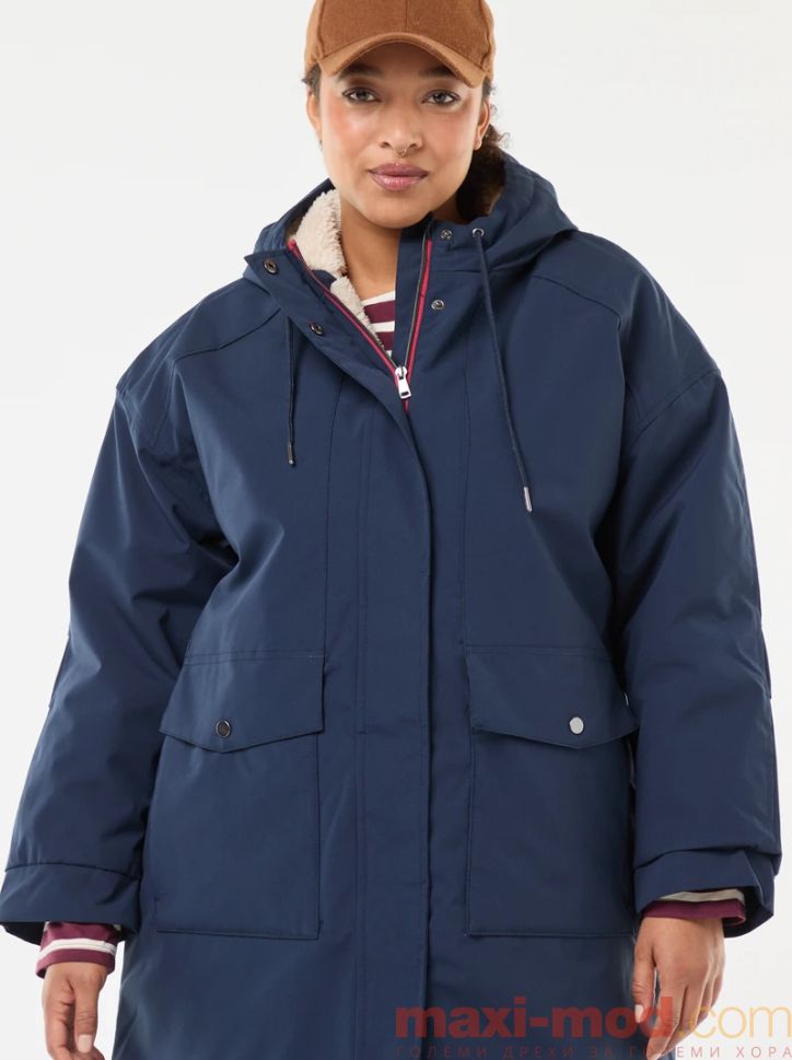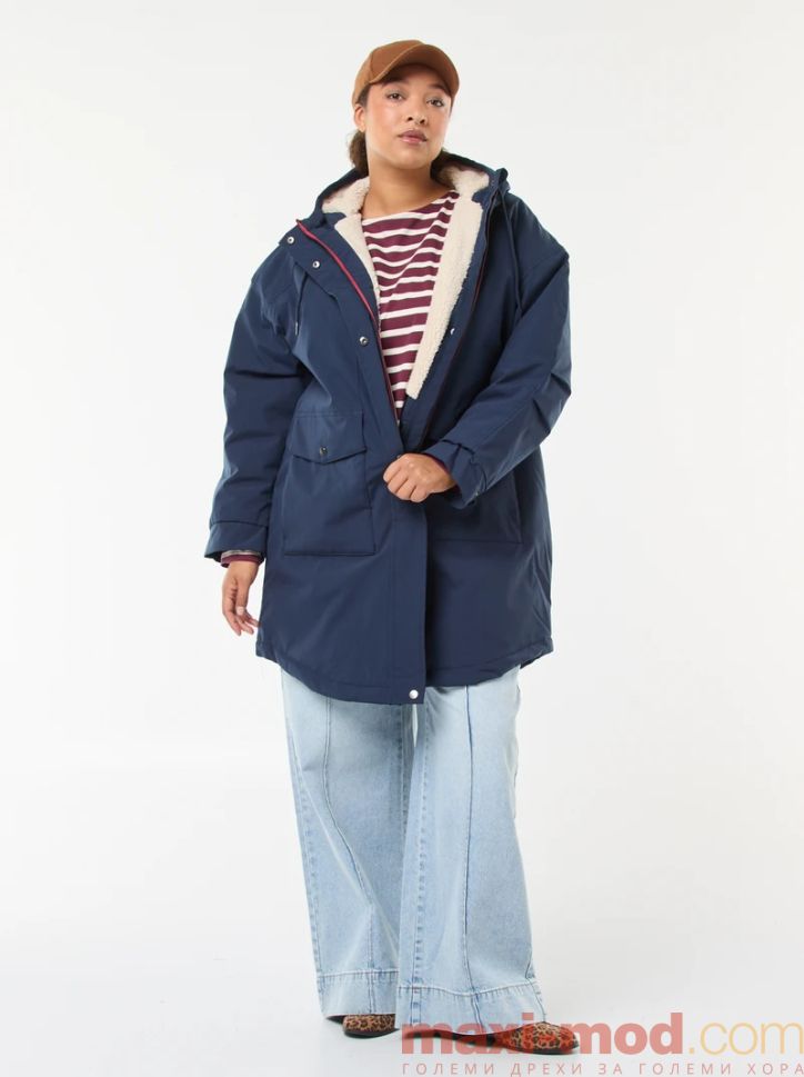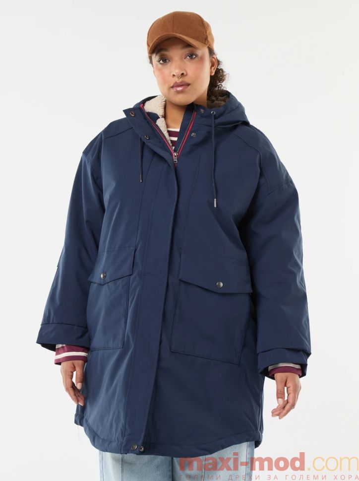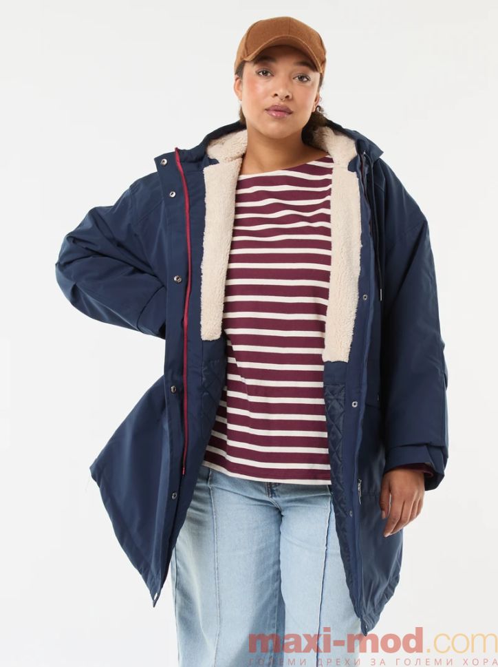 Голям размер дамска парка с подплата. Подходяща за ежедневието и свободното време.