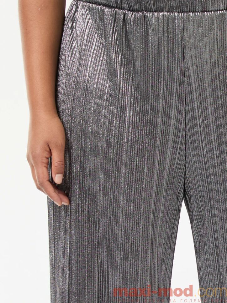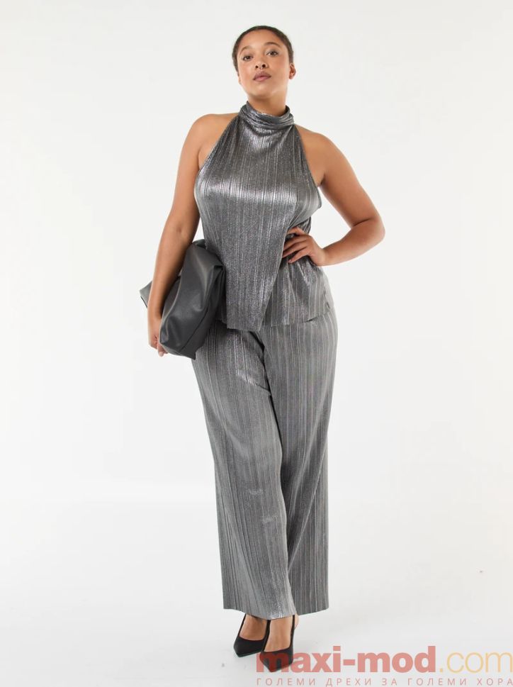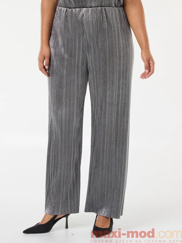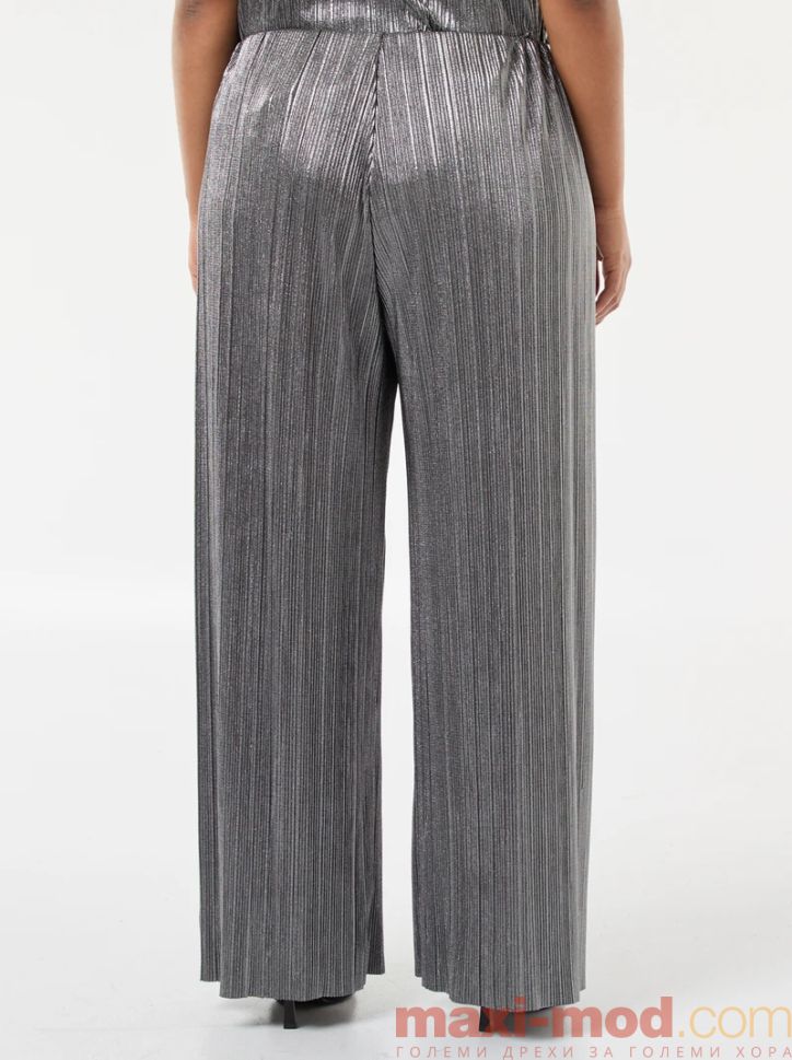 Сребрист плисиран панталон с широки крачоли. Подходящ за ежедневието и свободното време.