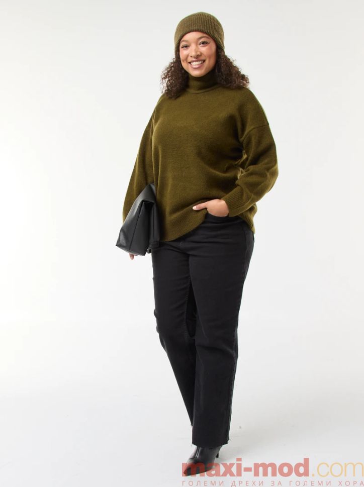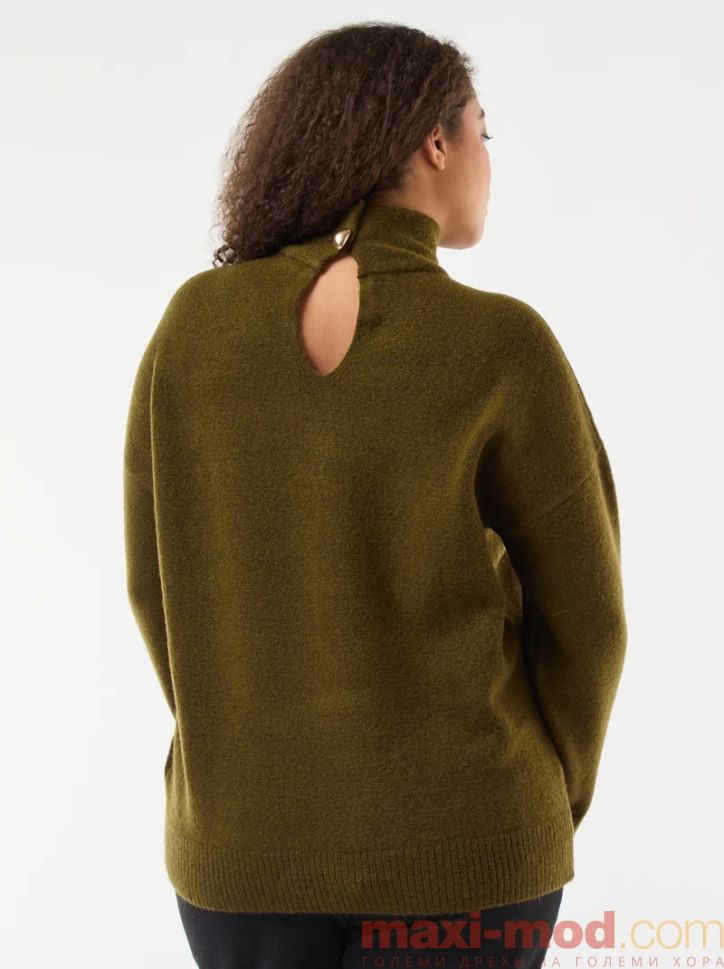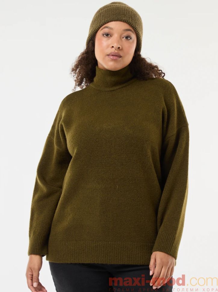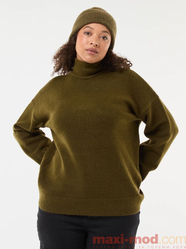 Дамски пуловер с висока яка. Подходяща за ежедневието и свободното време.