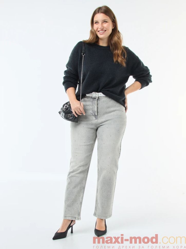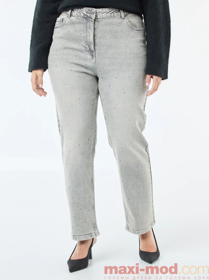 Дънки с висока талия и кристали