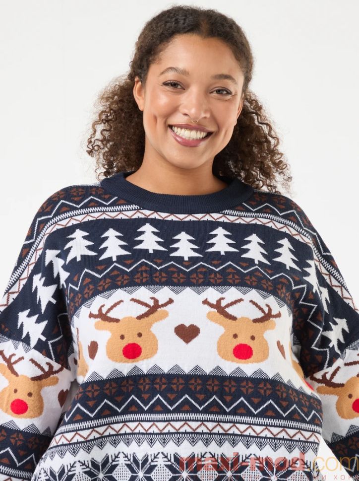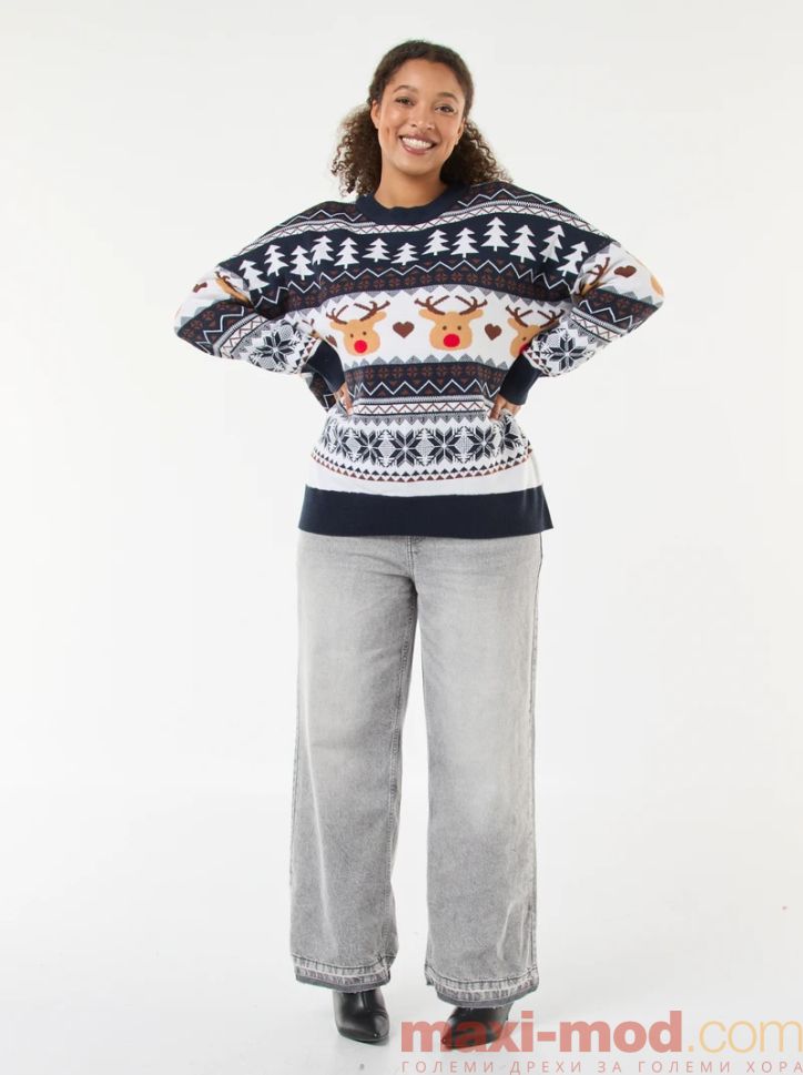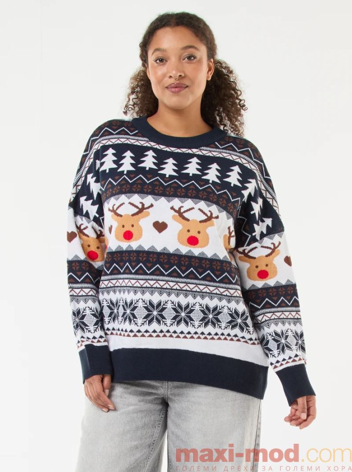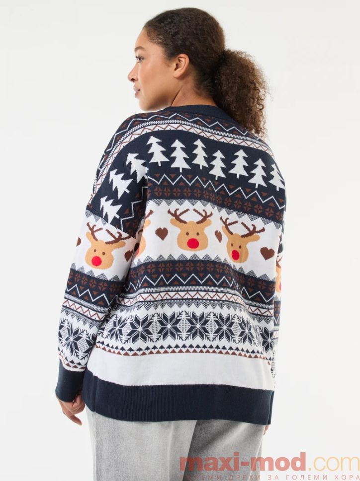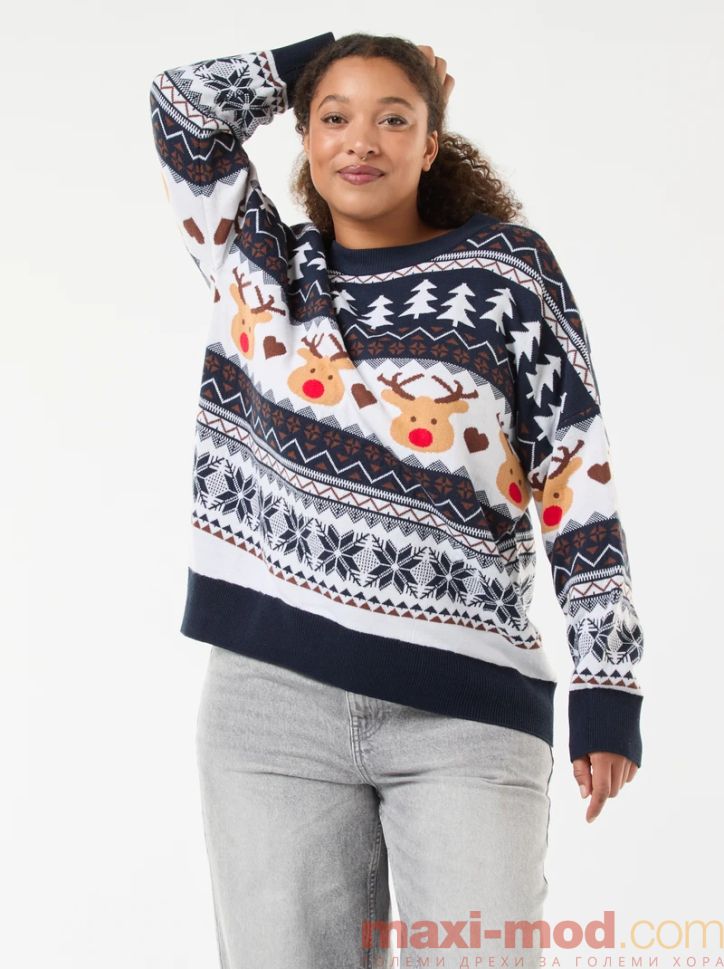 Дамски коледен пуловер макси размер. Подходяща за ежедневието и свободното време.
