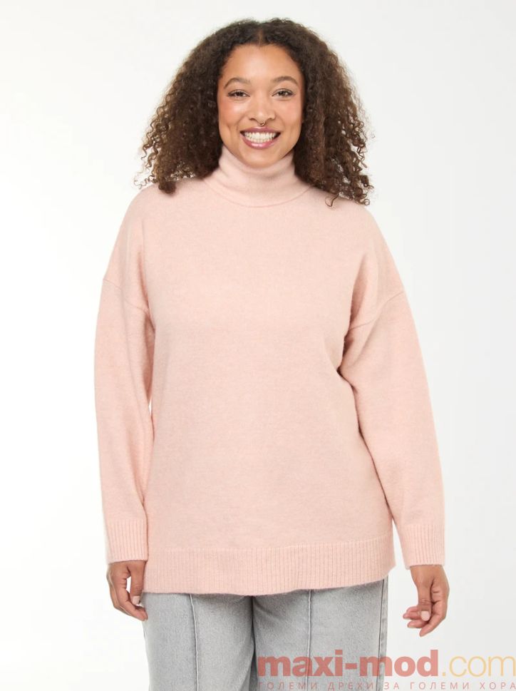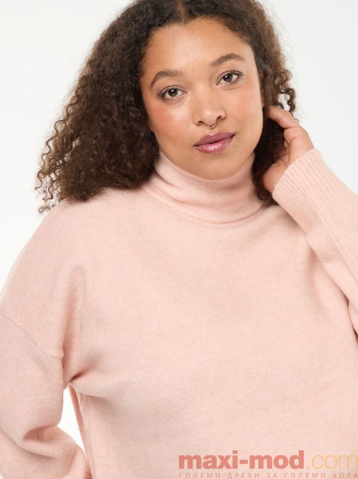 Дамски пуловер с висока яка. Подходяща за ежедневието и свободното време.