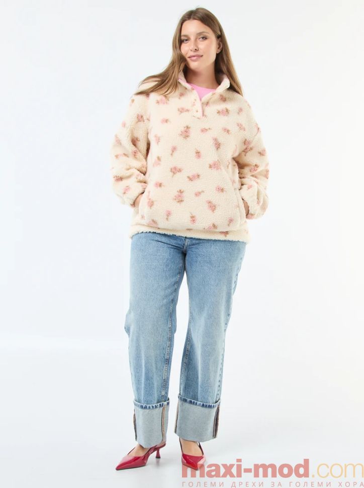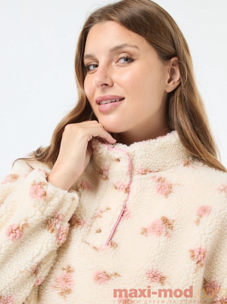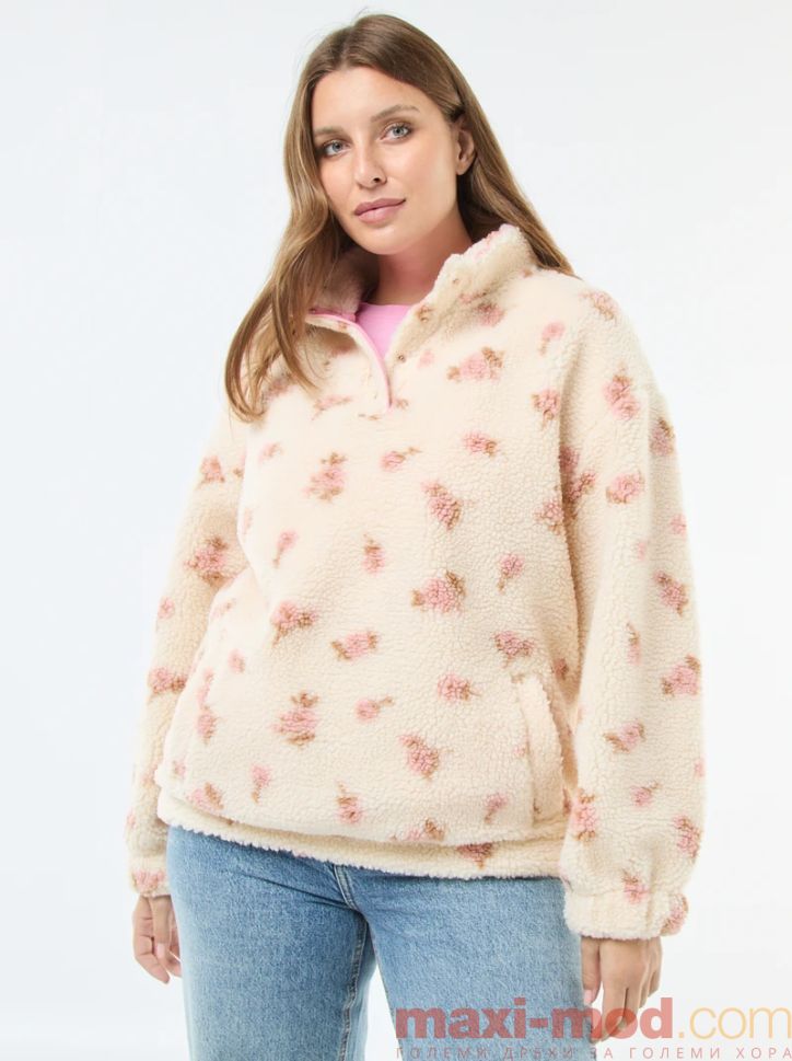 Дамска блуза шерпа с висока яка голям размер. Подходяща за ежедневието и свободното време.