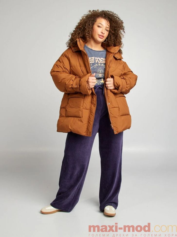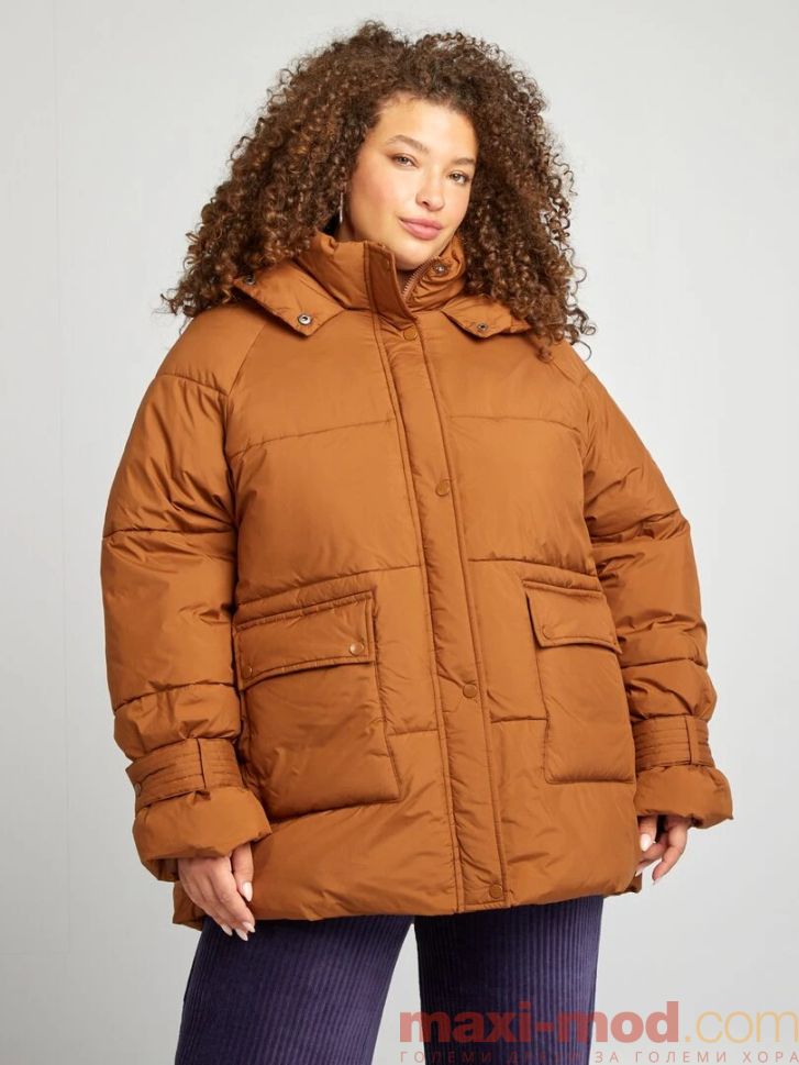 Стилно и модерно дамско зимно яке в топъл кафяв цвят, създадено да осигури максимален комфорт и защита в студените дни. Подходящо за жени с по-едра фигура, без компромис между удобство и визия.