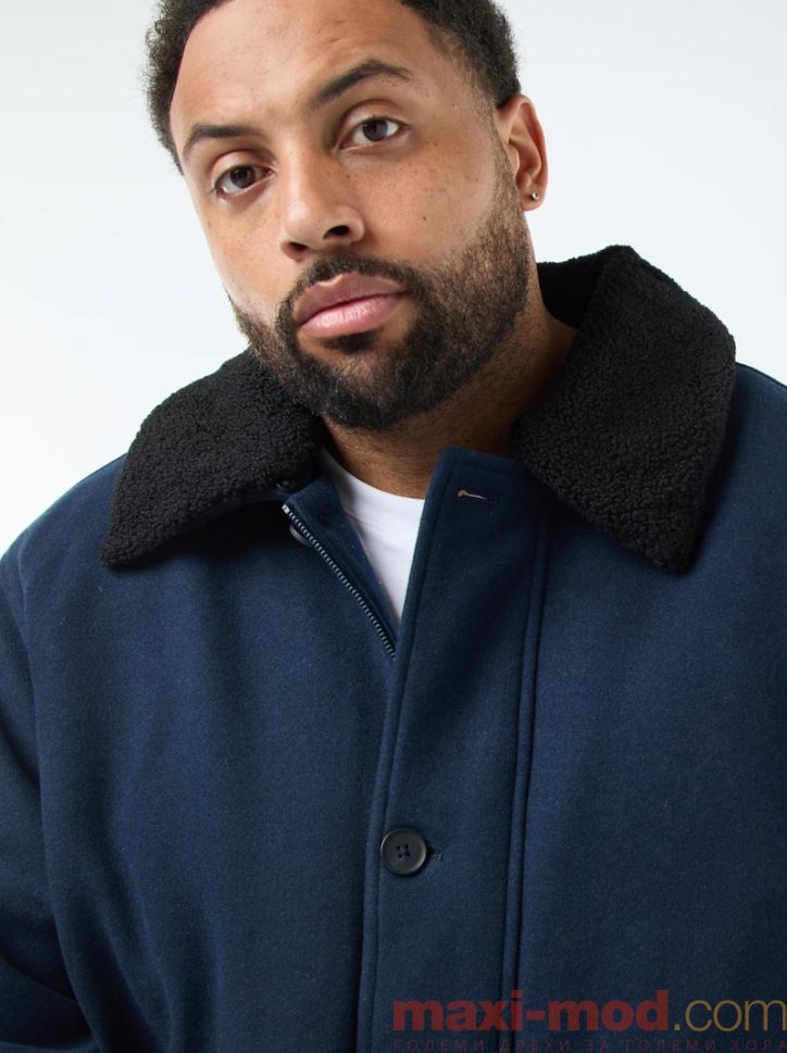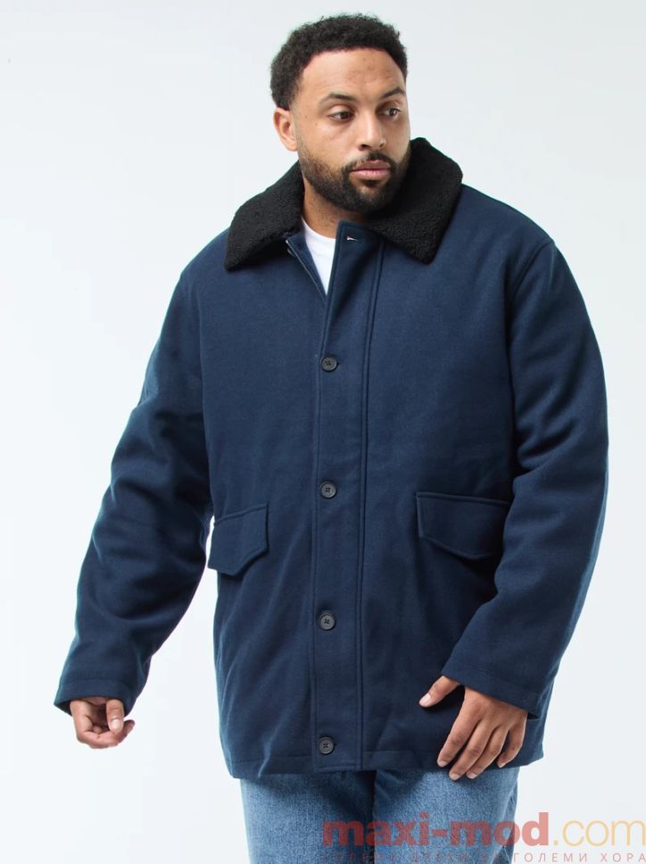 Начало Мъже макси размери Мъжки якета и палта Вълнена парка с яка от овча кожа
