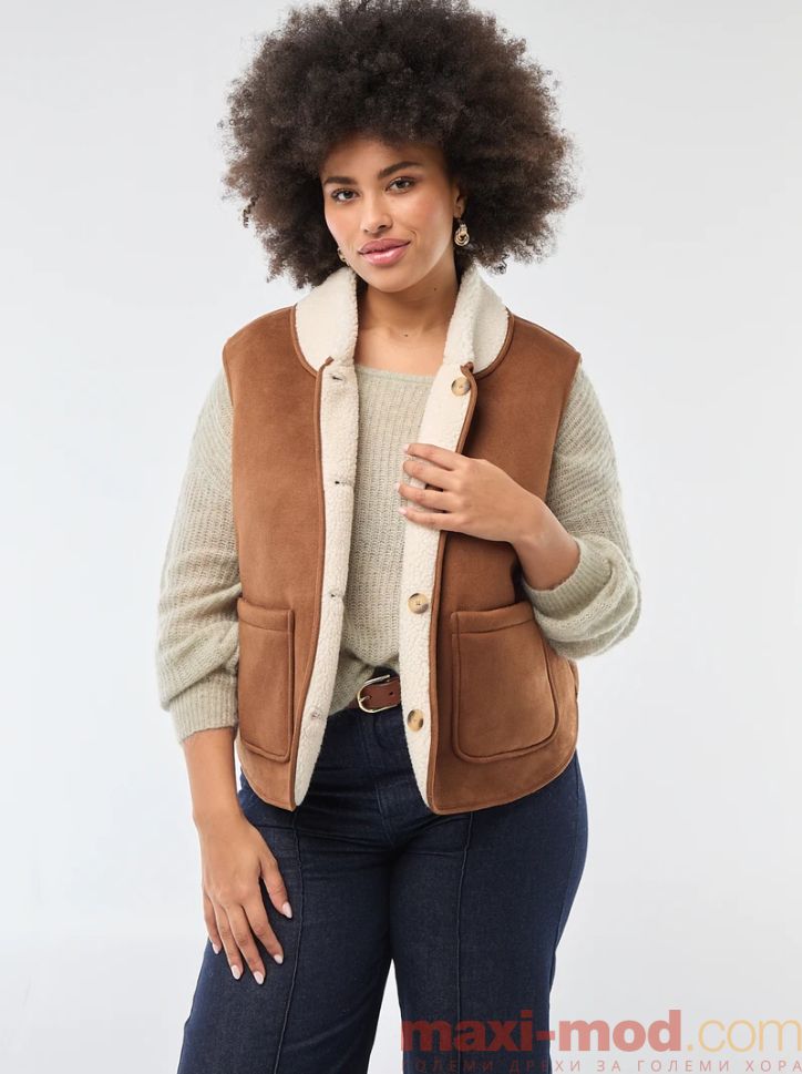 Голям размер дамски шерпа елек. Подходящо за ежедневието и свободното време.