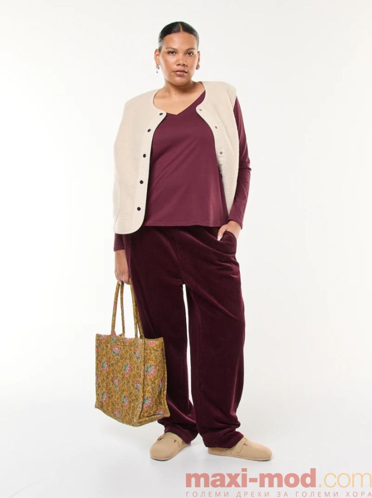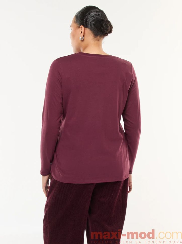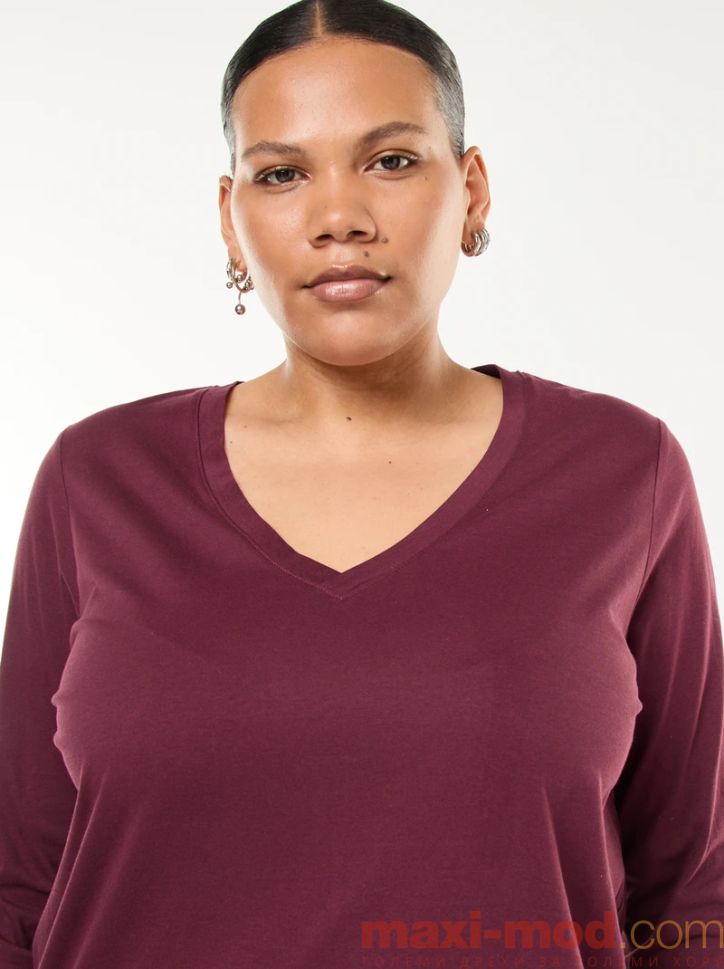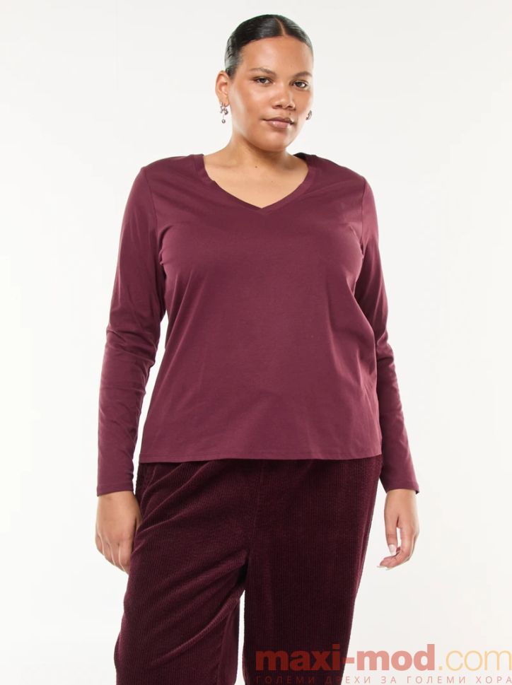 Голям размер дамска блуза с V-образно деколте. Подходяща за ежедневието и свободното време.