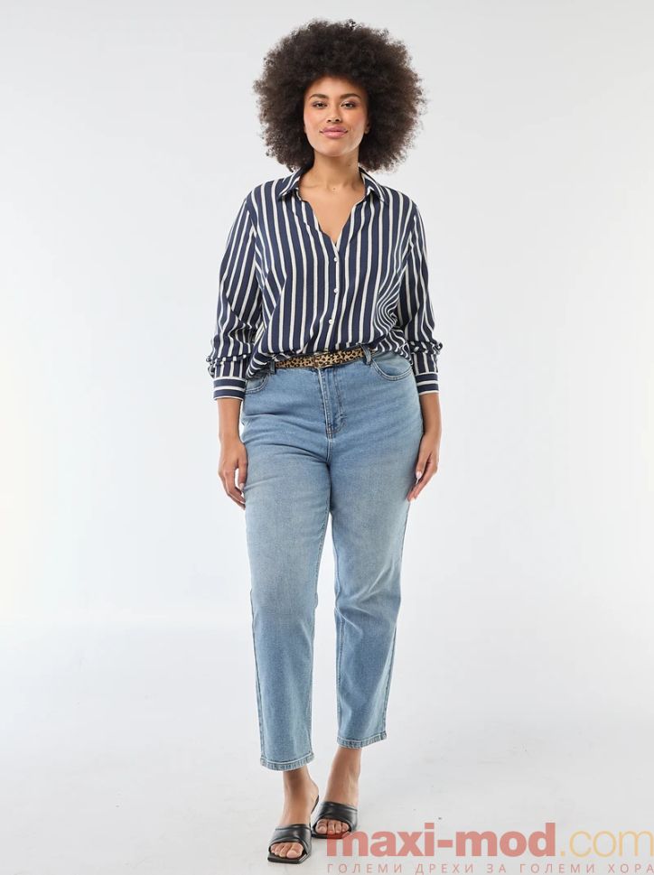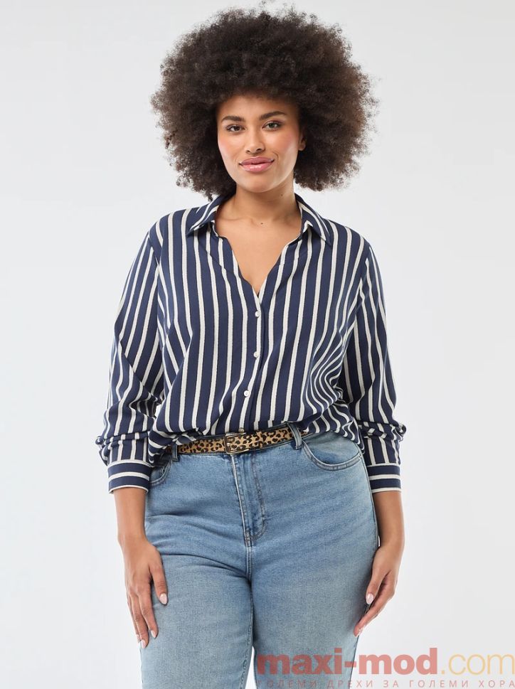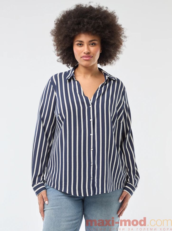 Голям размер дамска риза с креп ефект. Подходяща за ежедневието и свободното време.