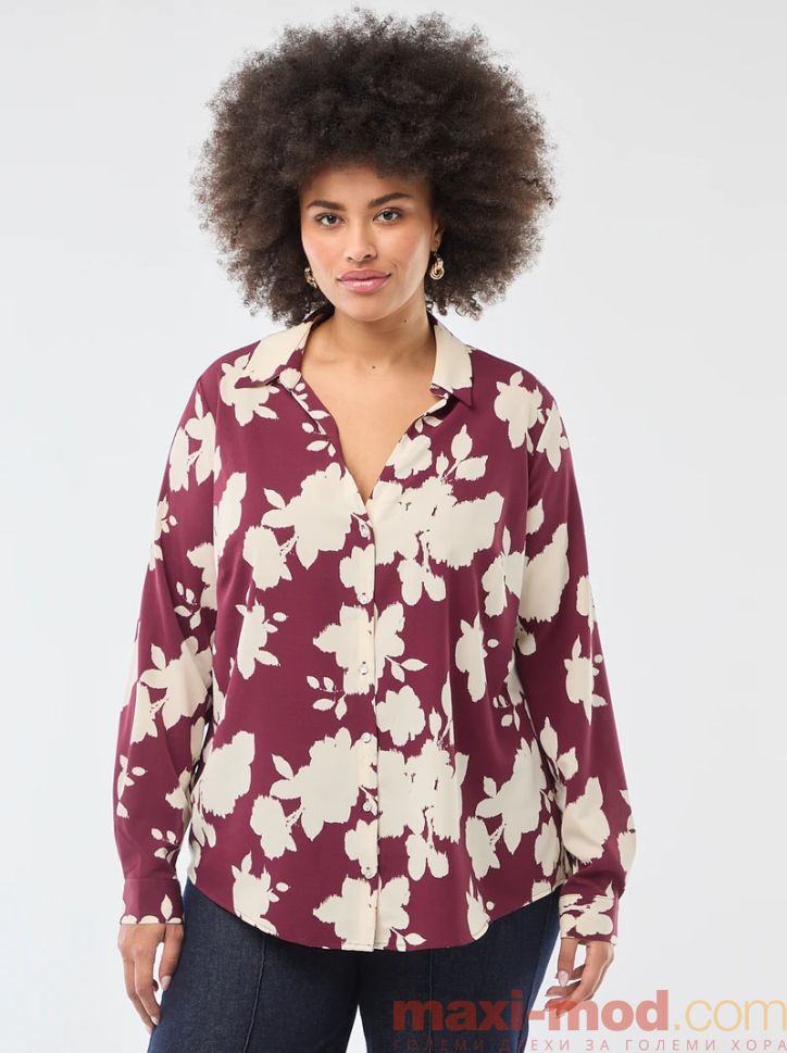 Голям размер дамска риза с креп ефект. Подходяща за ежедневието и свободното време.