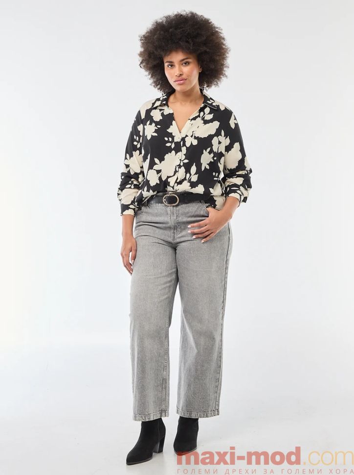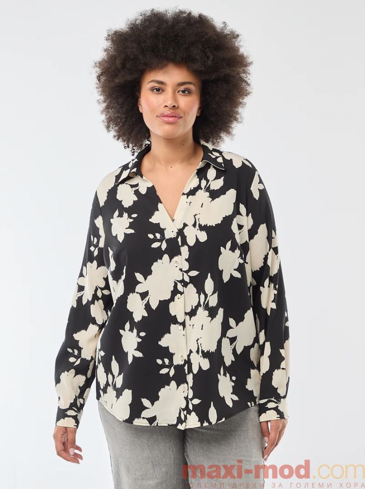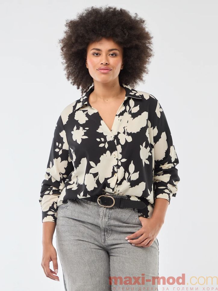 Голям размер дамска риза с креп ефект. Подходяща за ежедневието и свободното време.
