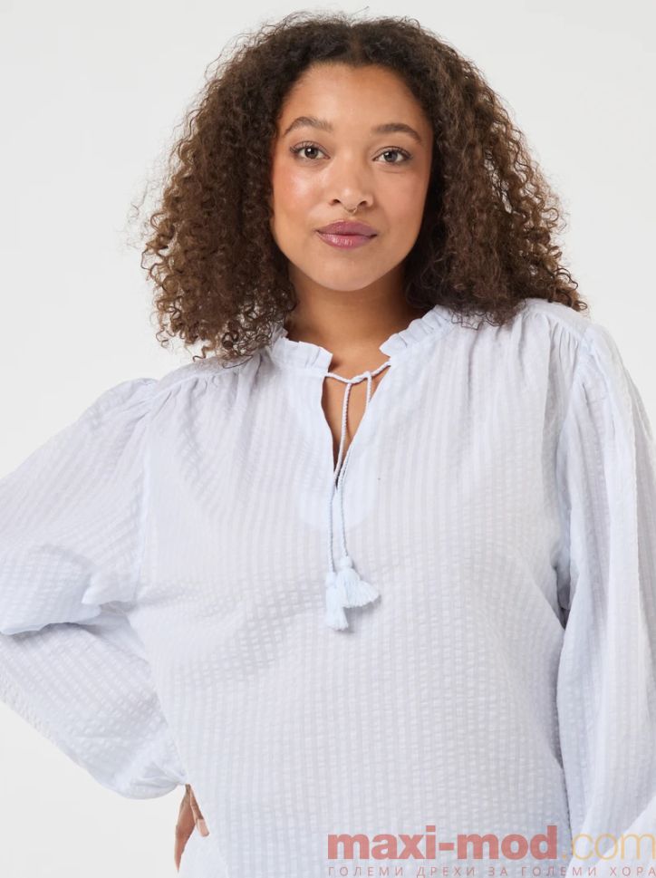 Голям размер дамска блуза с широки ръкави. Подходяща за ежедневието и свободното време.
