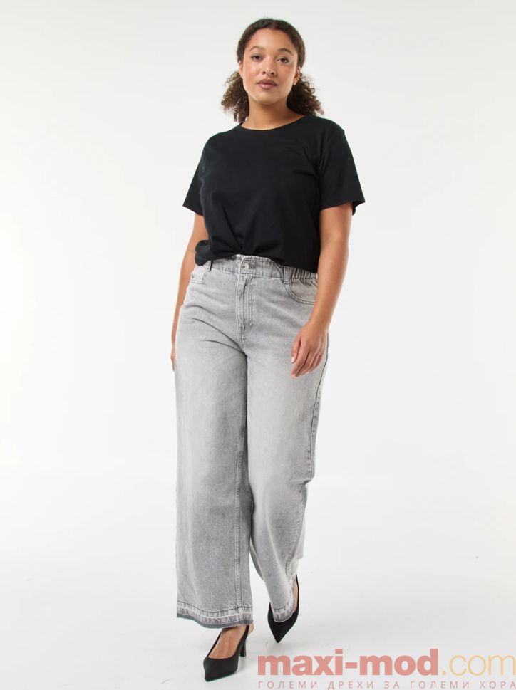 Дамски дънки с широки крачоли и ластик в колана. Подходящи за ежедневието и свободното време.
