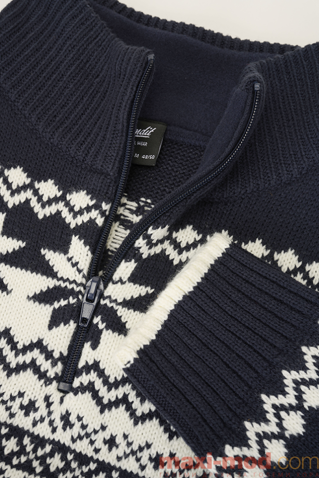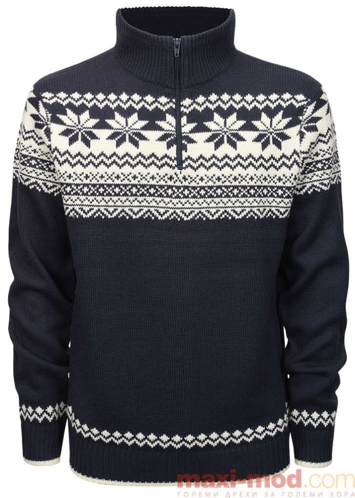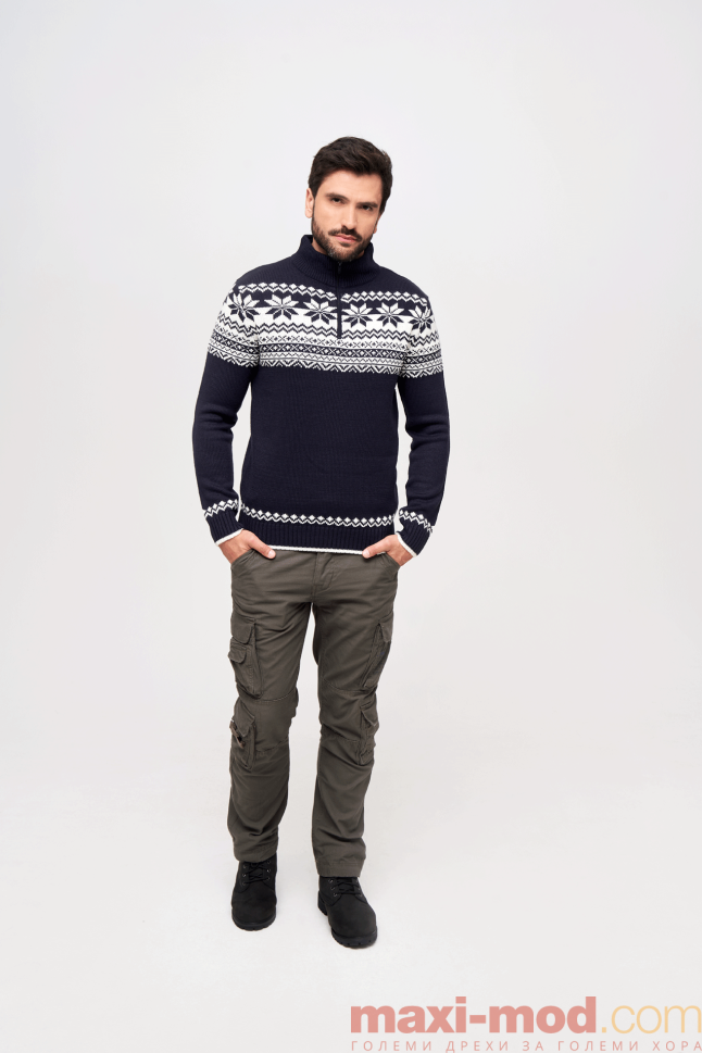 Мъжки плетен пуловер с висока яка с цип тип "Норвежки". Подходяща за ежедневието и свободното време.