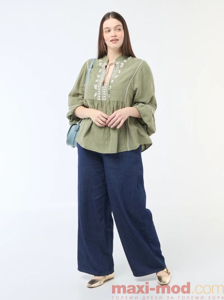 Дамска блуза с бродерия. Подходяща за ежедневието и свободното време.