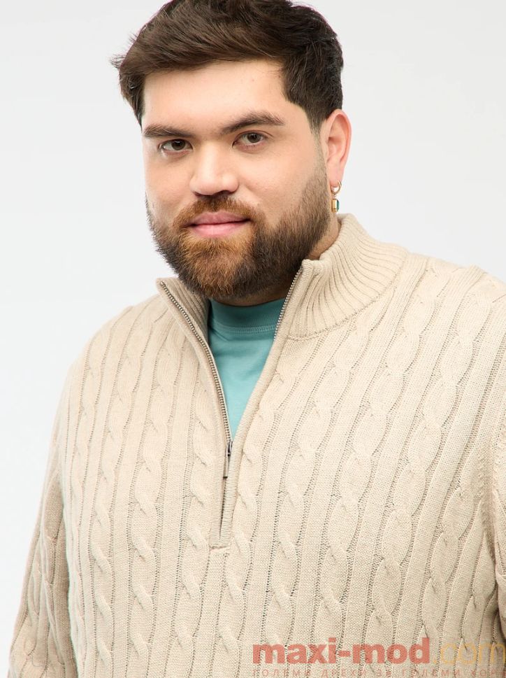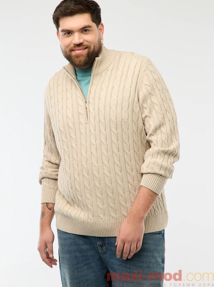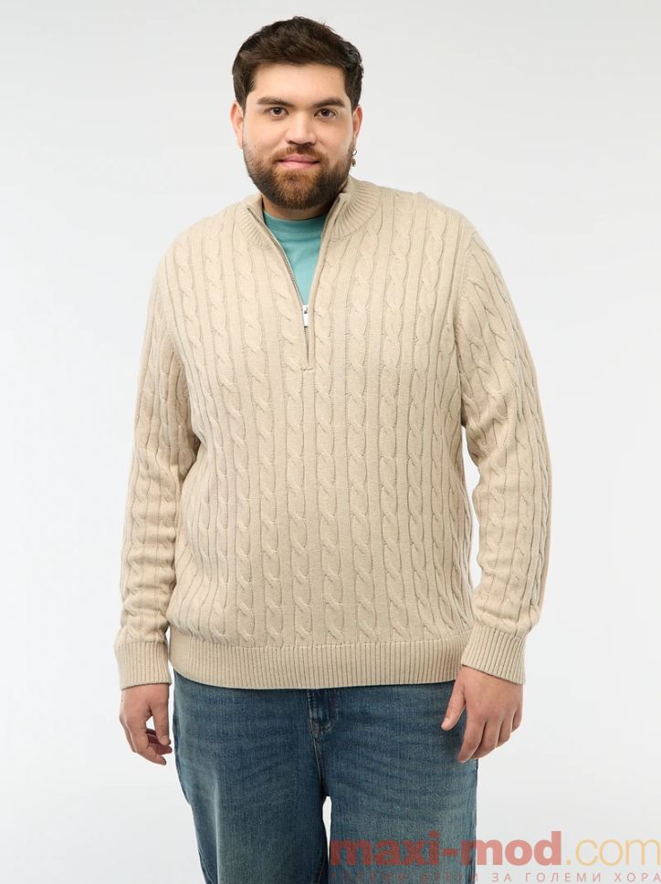Мъжки плетен пуловер с висока яка и цип. Подходяща за ежедневието и свободното време.