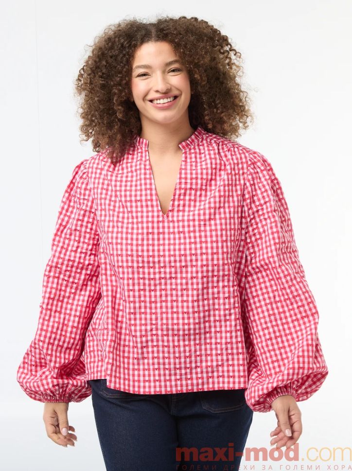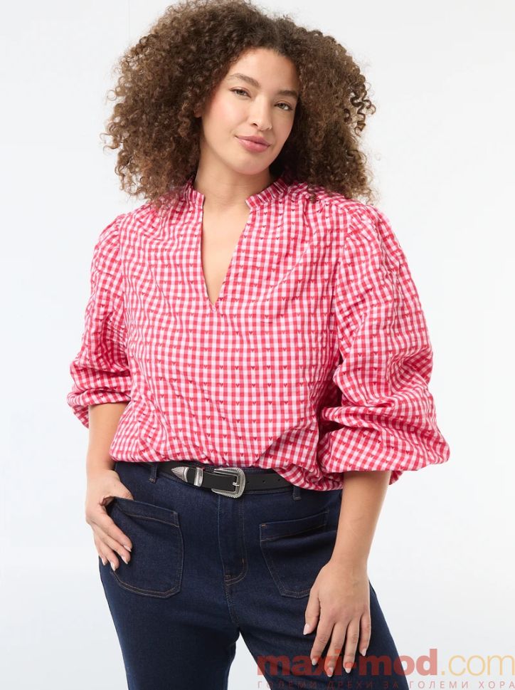 Голям размер дамска карирана блуза . Подходяща за ежедневието и свободното време.