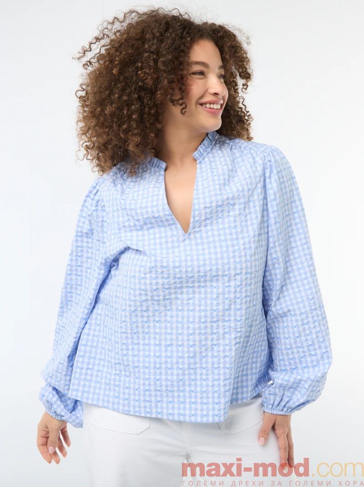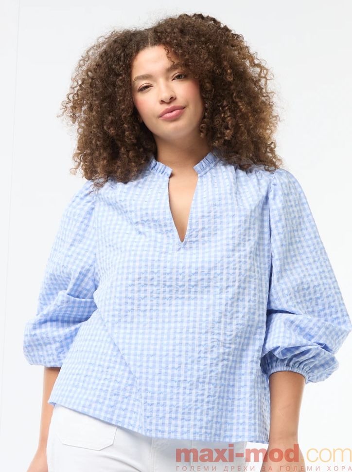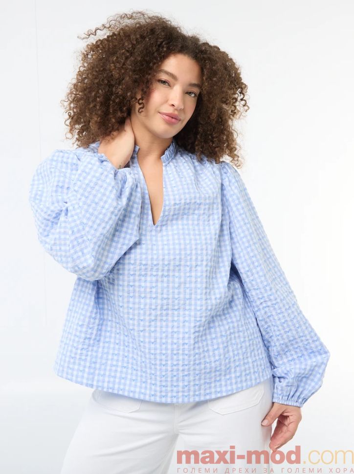 Голям размер дамска карирана блуза . Подходяща за ежедневието и свободното време.