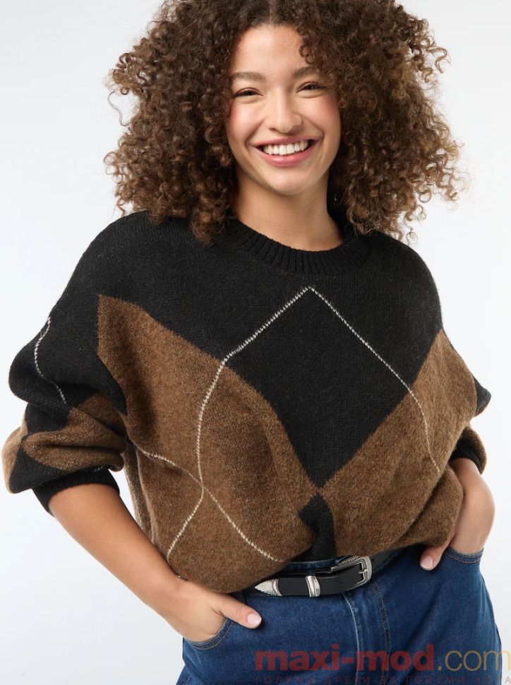 Дамски плетен пуловер макси размер Подходяща за ежедневието и свободното време.