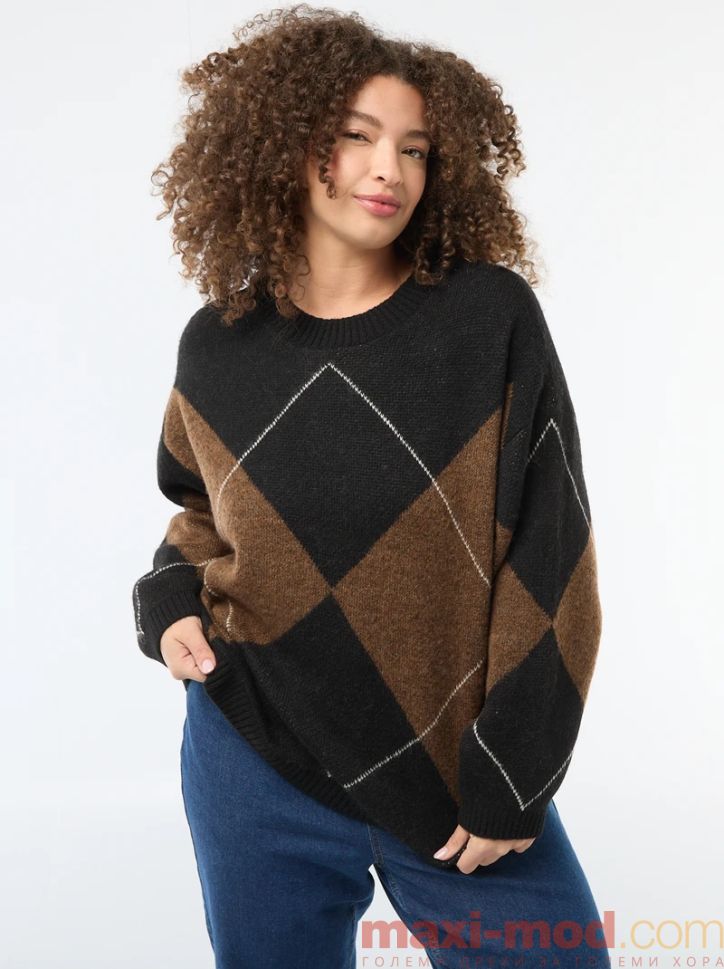 Дамски плетен пуловер макси размер. Подходяща за ежедневието и свободното време.