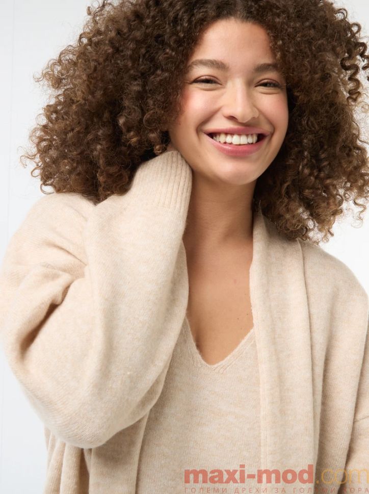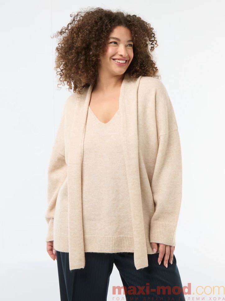 Дамски плетен пуловер с вграден шал . Подходяща за ежедневието и свободното време.