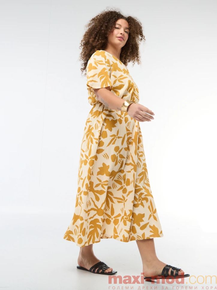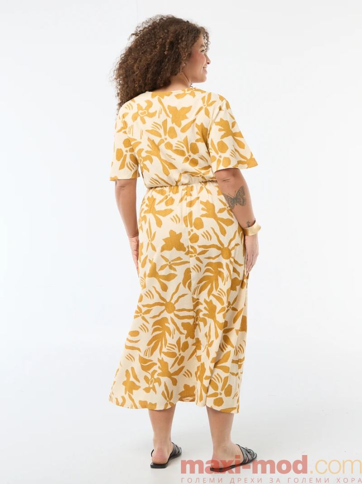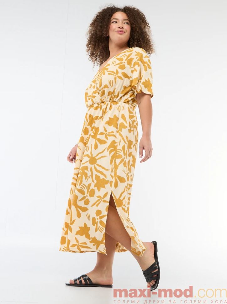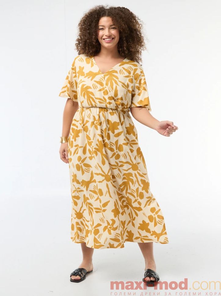Дълга рокля с V-образно деколте. Подходяща за ежедневието и свободното време.