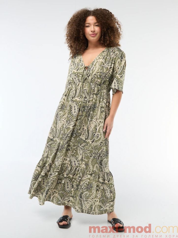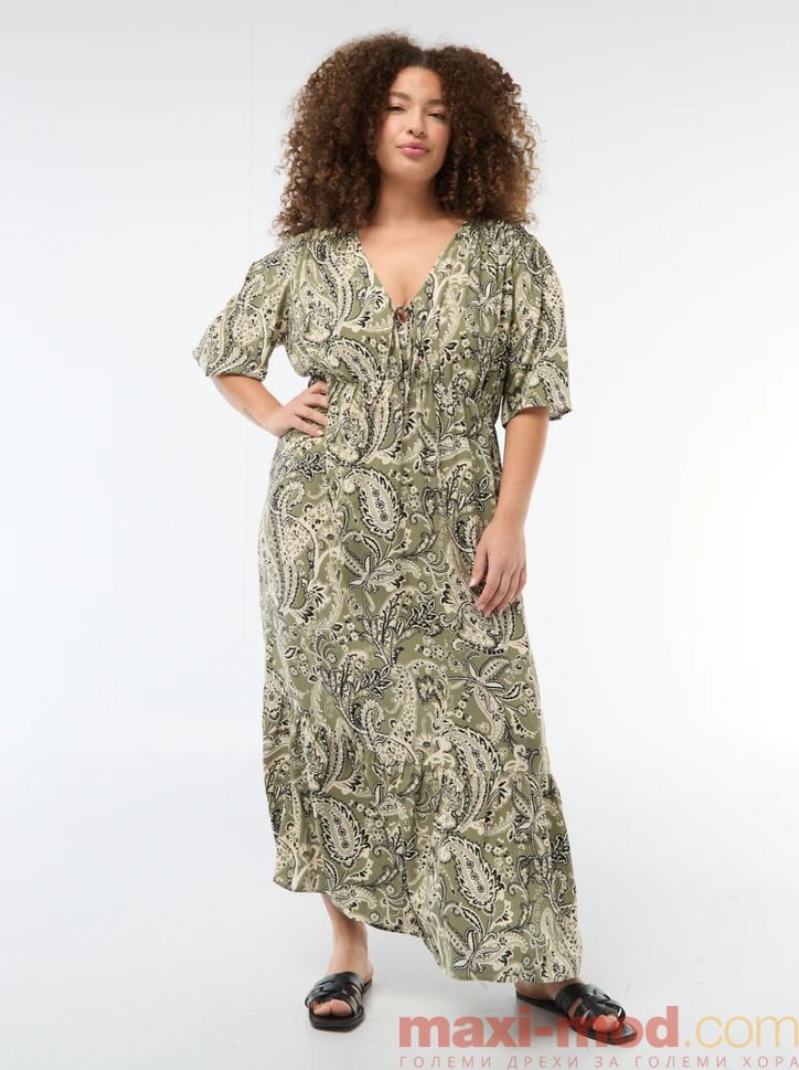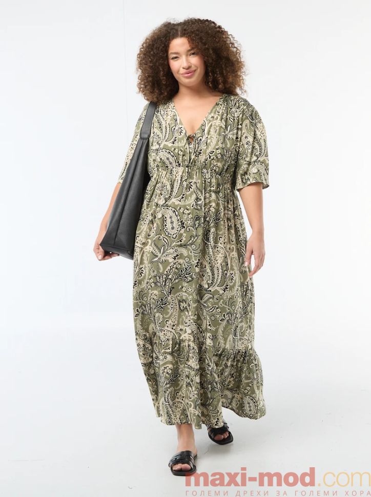 Еластична рокля с елегантен принт. Подходяща за ежедневието и свободното време.