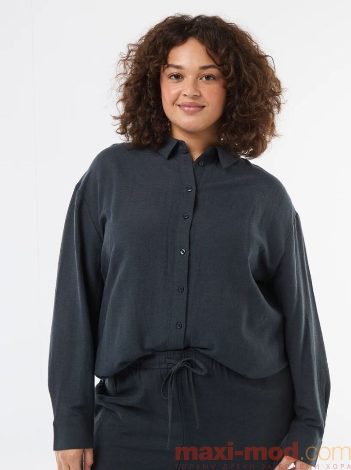 Ефирна риза дълъг ръкав от ленен и памук. Подходяща за ежедневието и свободното време.
