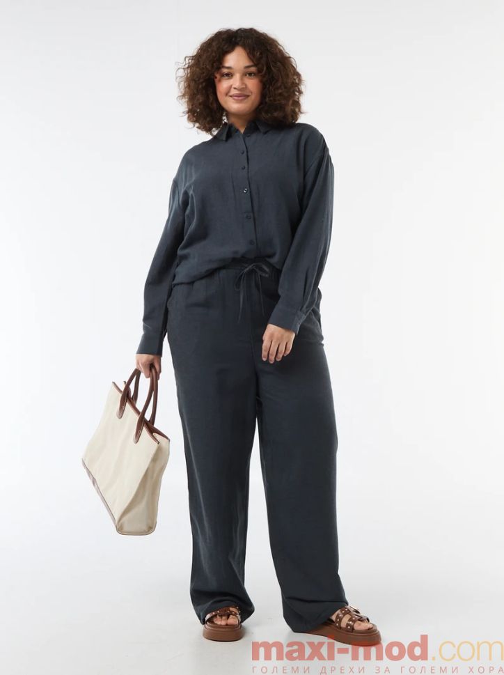 Ефирна риза дълъг ръкав от ленен и памук