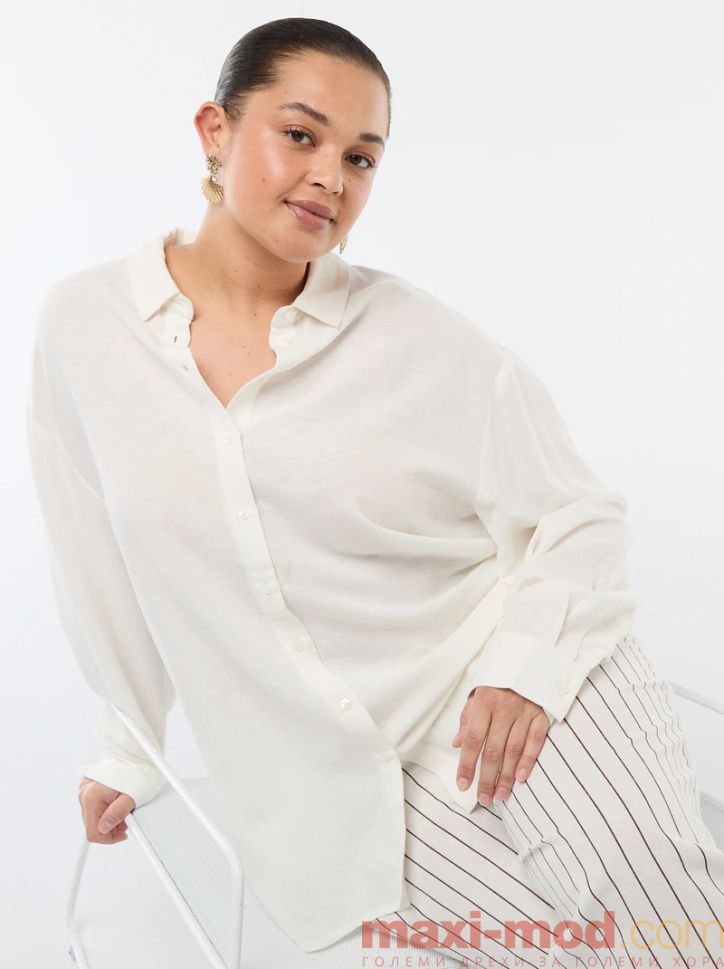 Ефирна риза дълъг ръкав от ленен и памук. Подходяща за ежедневието и свободното време.