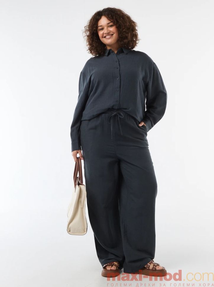 Начало Жени Големи Размери Дамски панталони Дамски панталон с прав крачол от ленена смес
