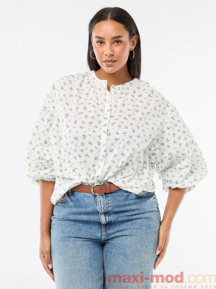 Дамска риза с кръгло деколте и дълъг ръкав. Подходяща за ежедневието и свободното време.