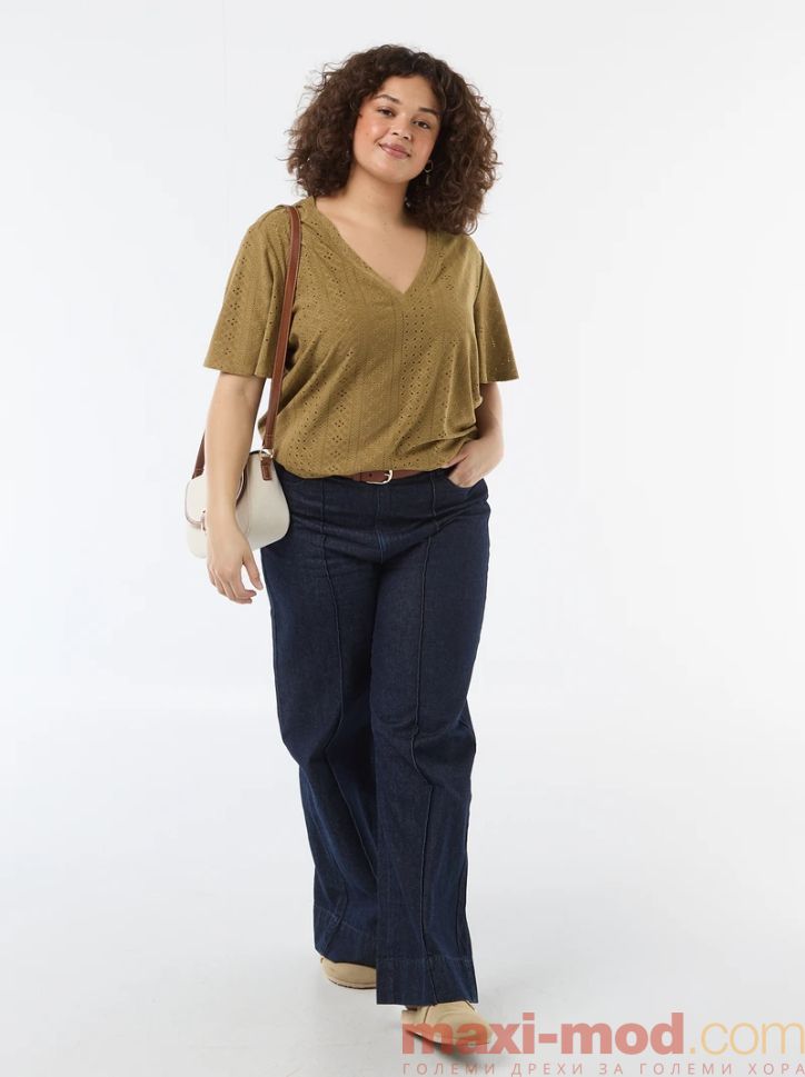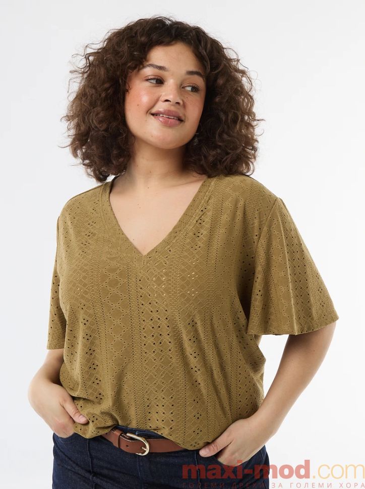 Начало Жени Големи Размери Тениски, туники, потници Дамска блуза с перфорирана плетка