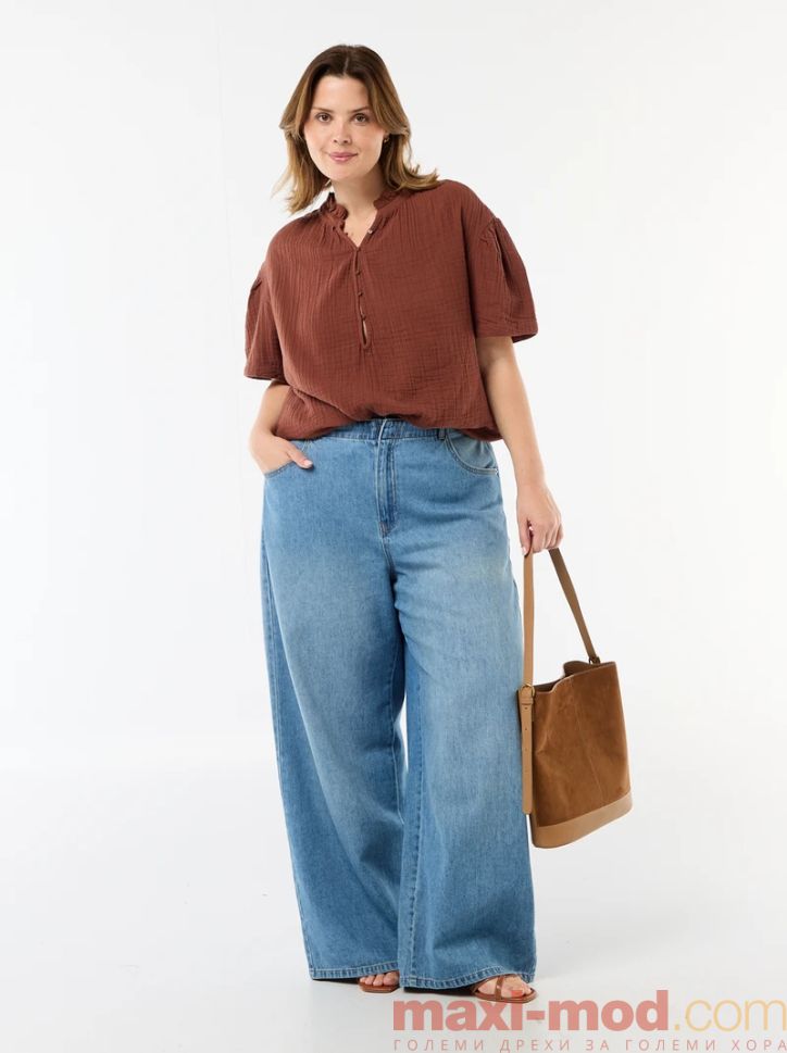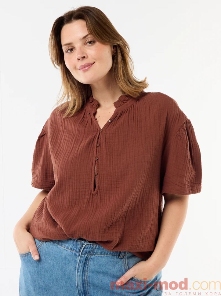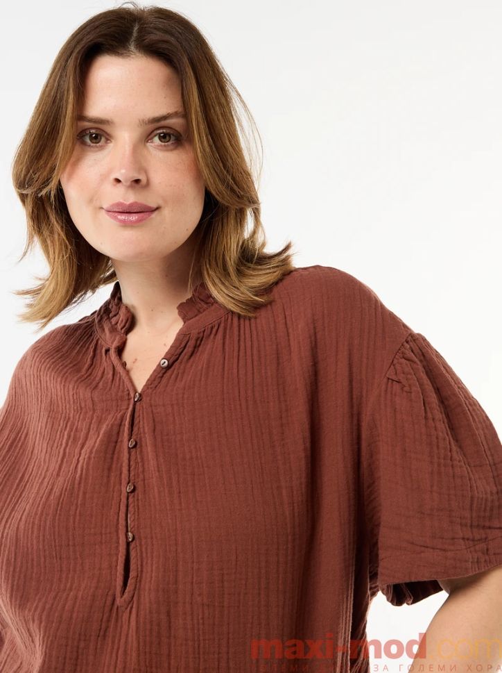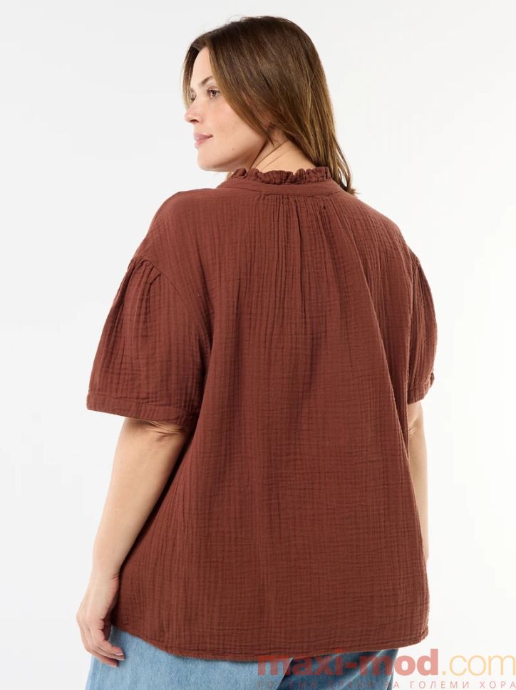 Дамска блуза от памучен плат с набрана яка.