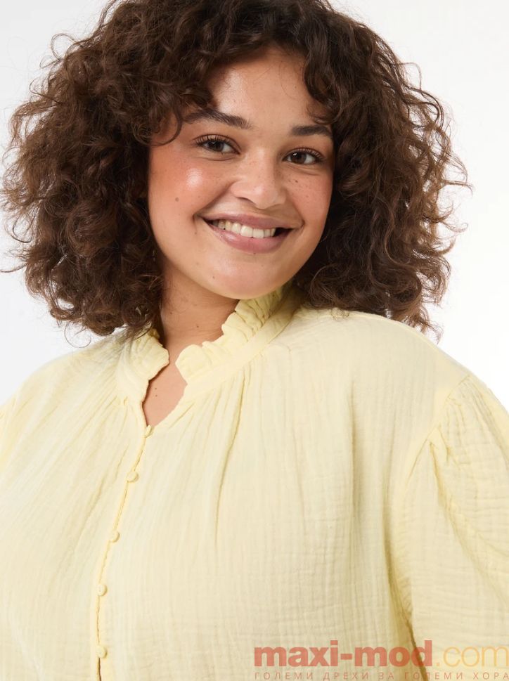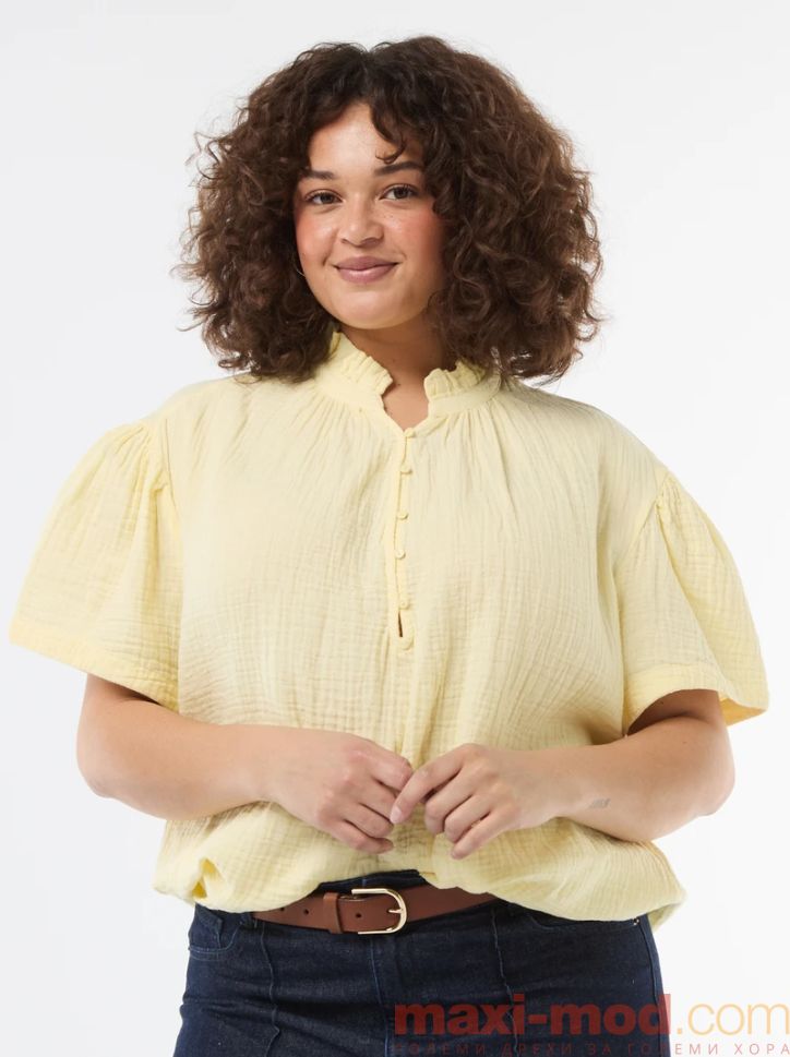 Дамска блуза от памучен плат с набрана яка.