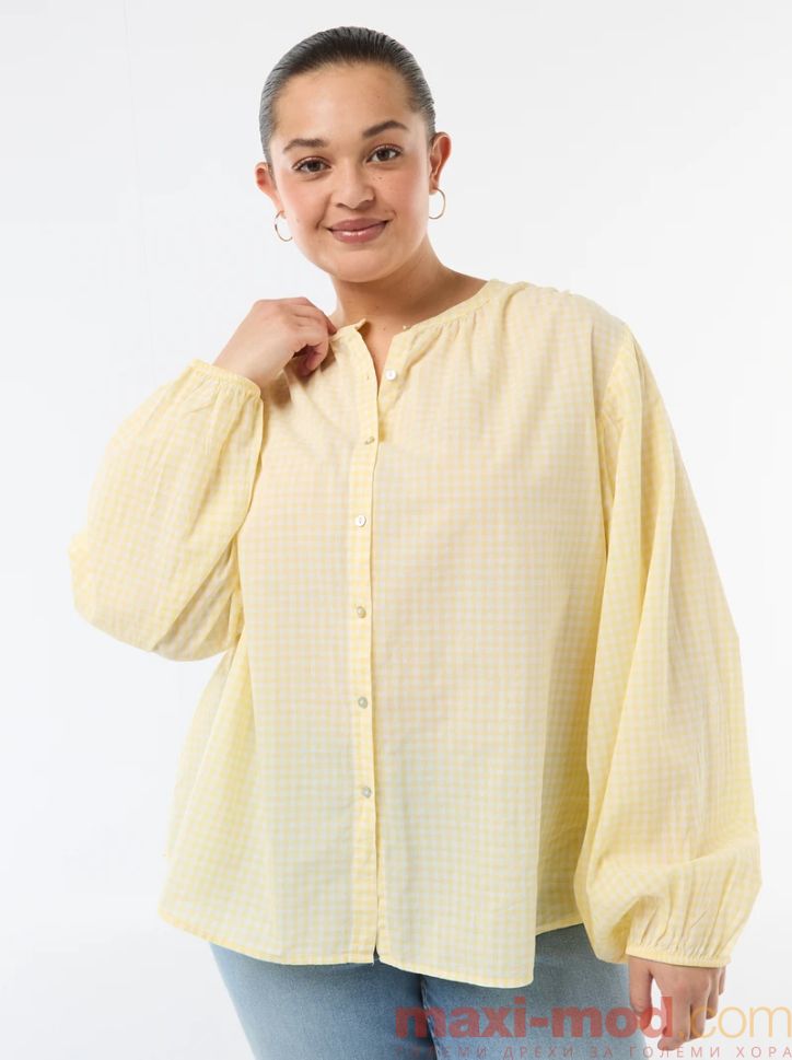 Дамска риза с кръгло деколте и дълъг ръкав