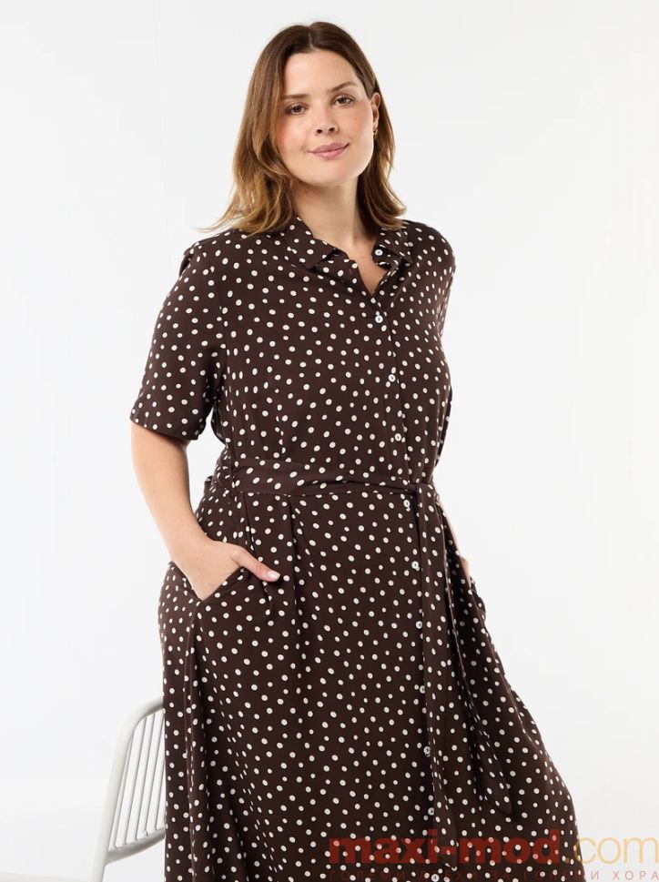 Рокля с къс ръкав и кафява на бели точки.