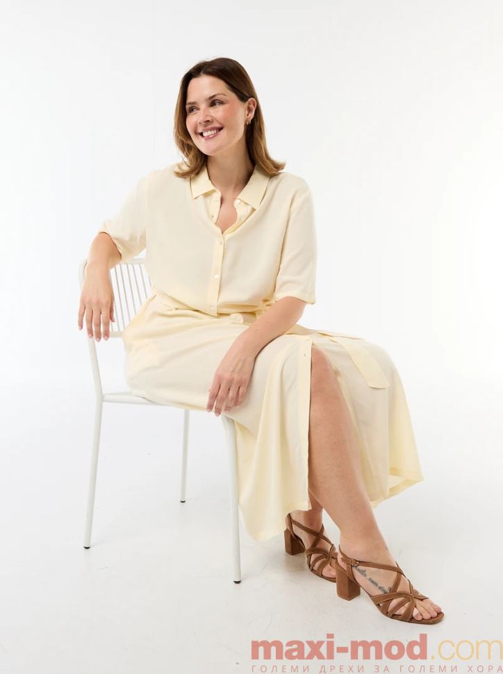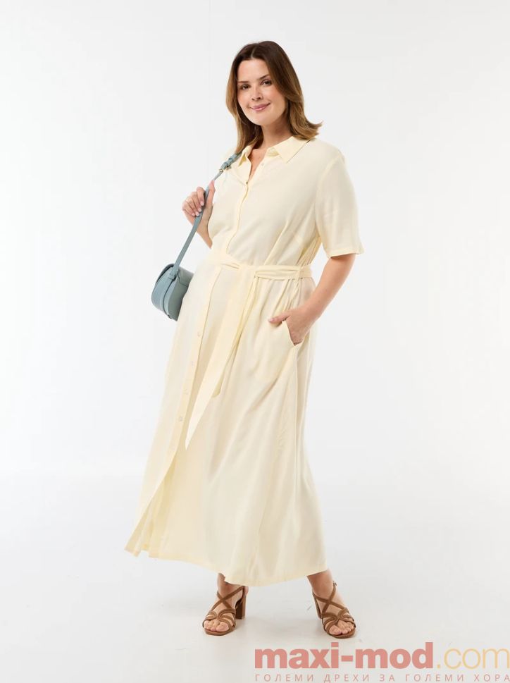 Рокля с къс ръкав и колан на талията. Подходяща за ежедневието и свободното време.