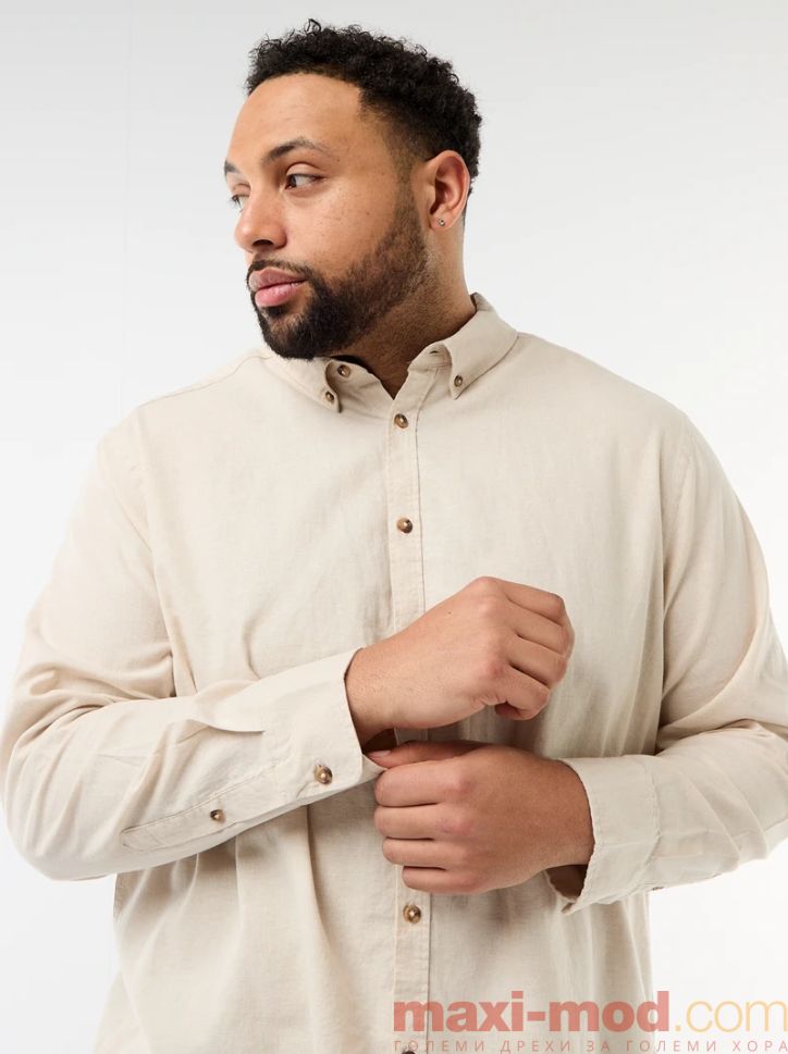 Начало Мъже макси размери Мъжки ризи Ленена риза с дълъг ръкав