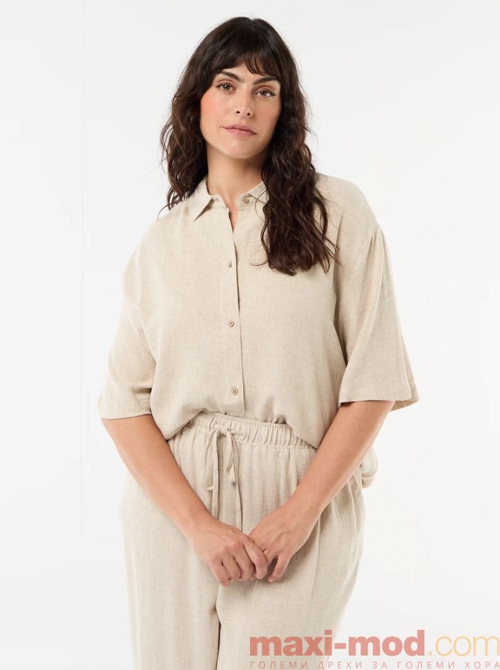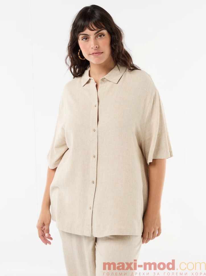 Дамска ленена риза с къс ръкав. Подходяща за ежедневието и свободното време.