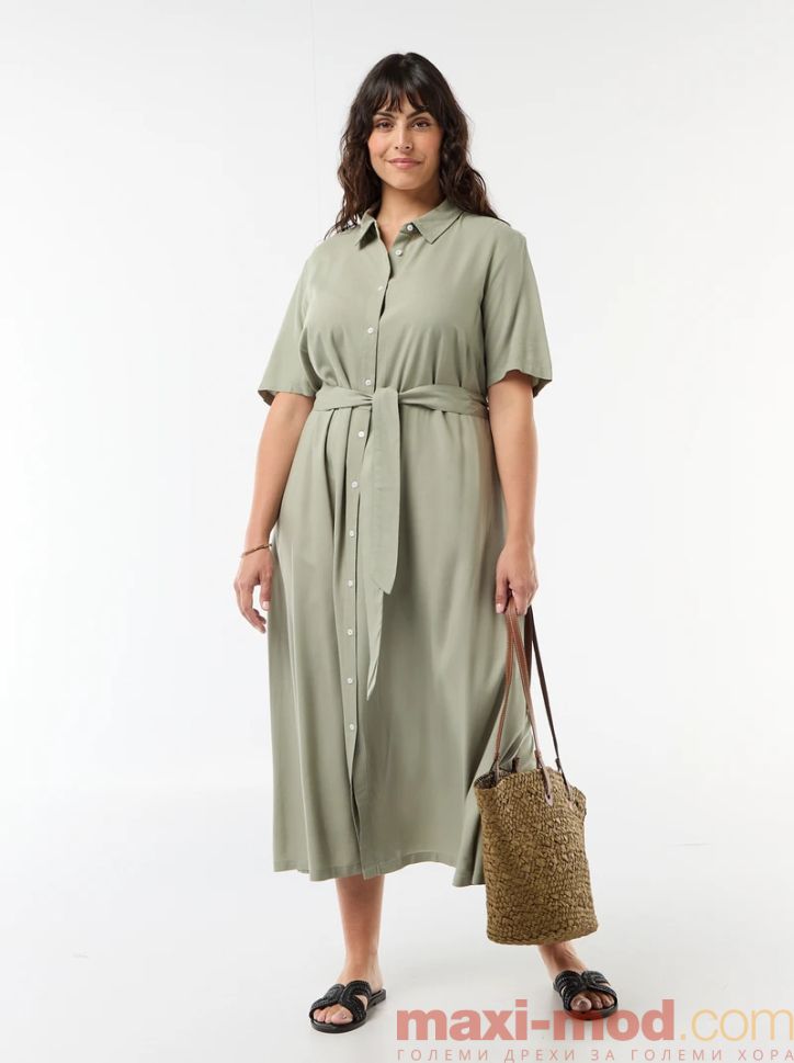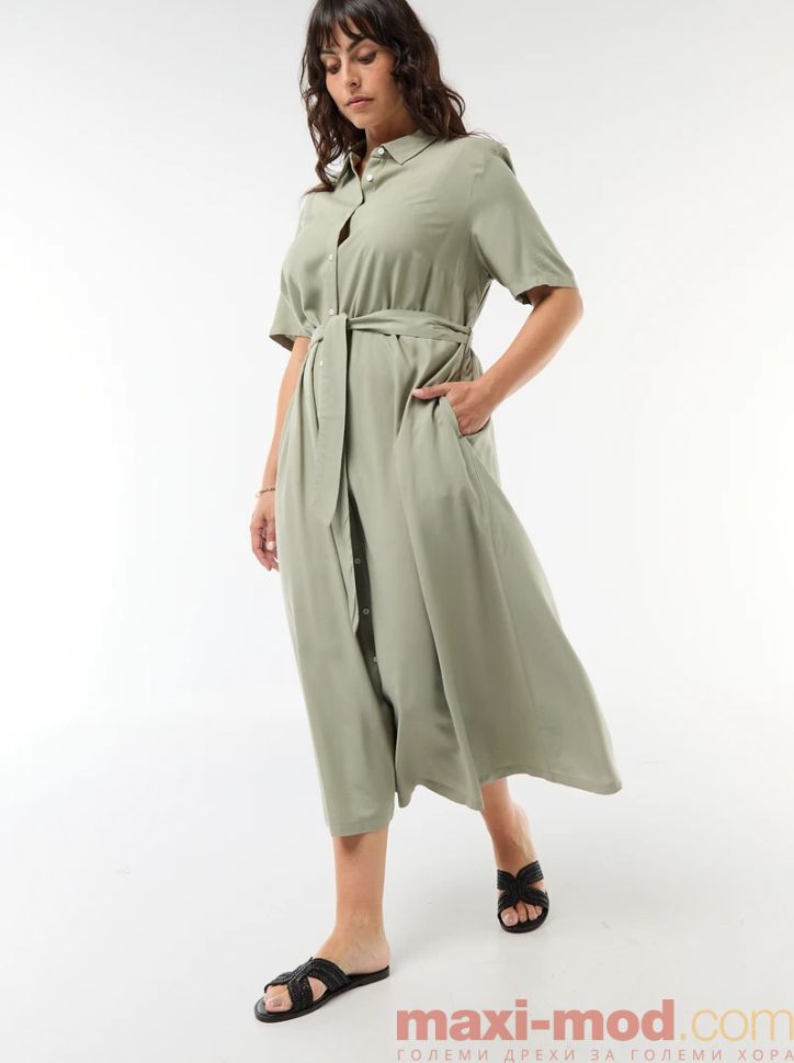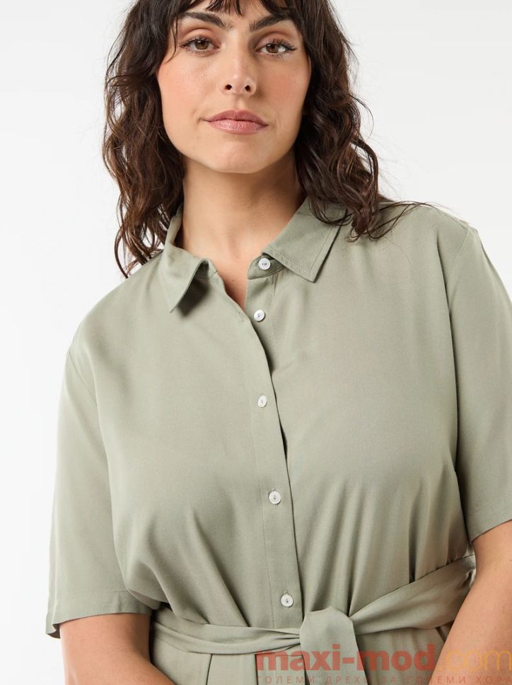 Рокля с къс ръкав и колан на талията. Подходяща за ежедневието и свободното време.