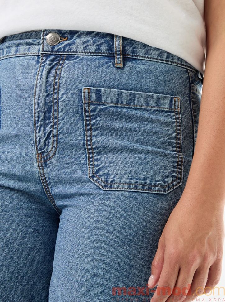Дънки с висока талия и широки крачоли с джобове отпред
