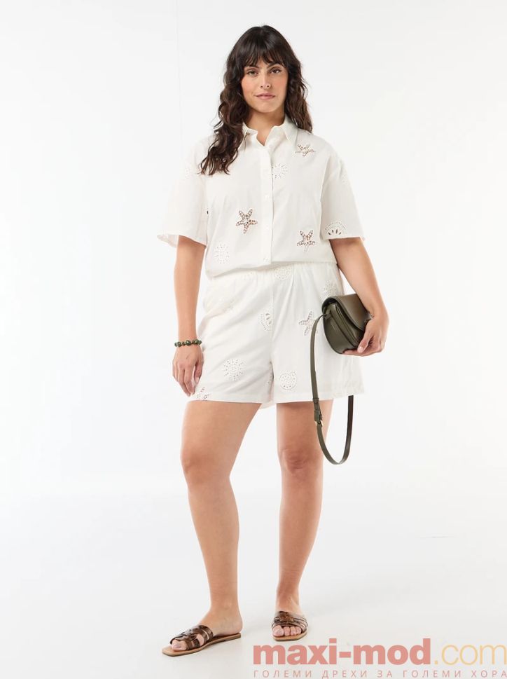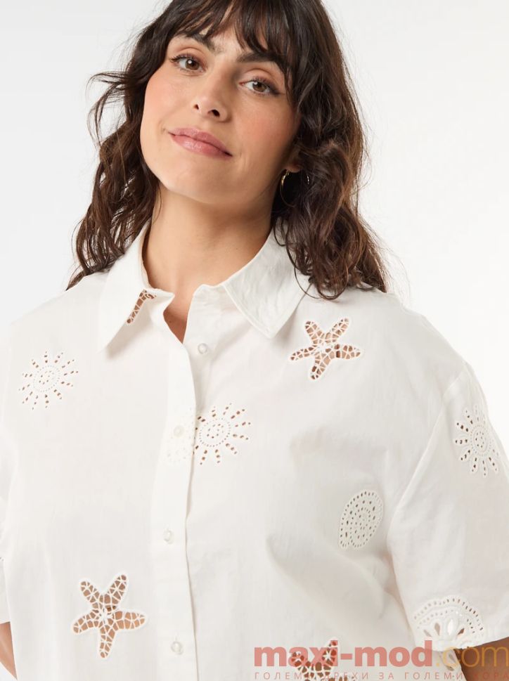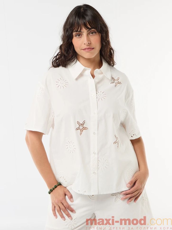 Памучна риза с ажурен мотив. Подходяща за ежедневието и свободното време.