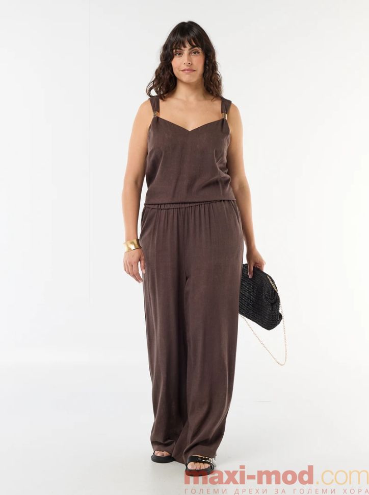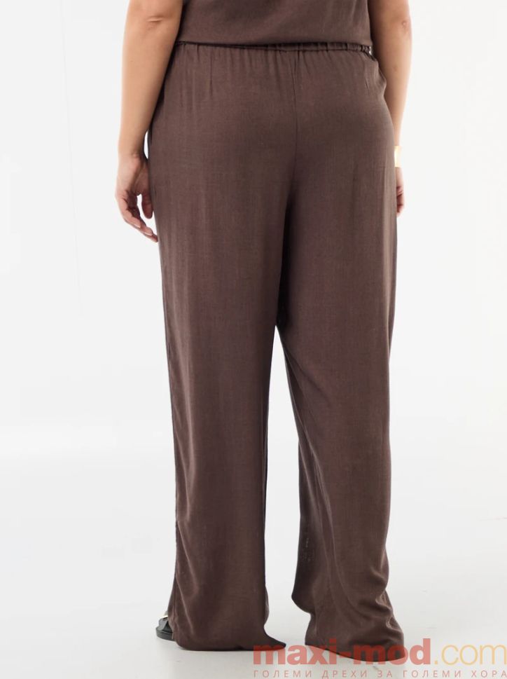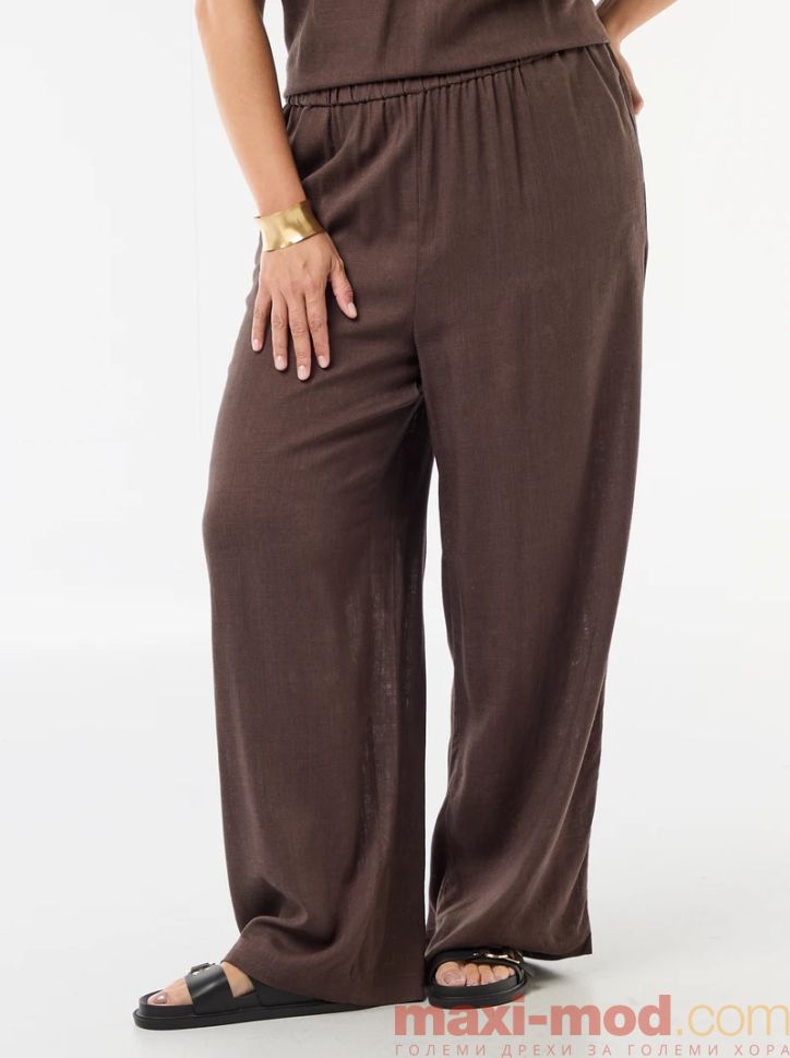 Широки панталони от ленена смес . Подходящ за ежедневието и свободното време.