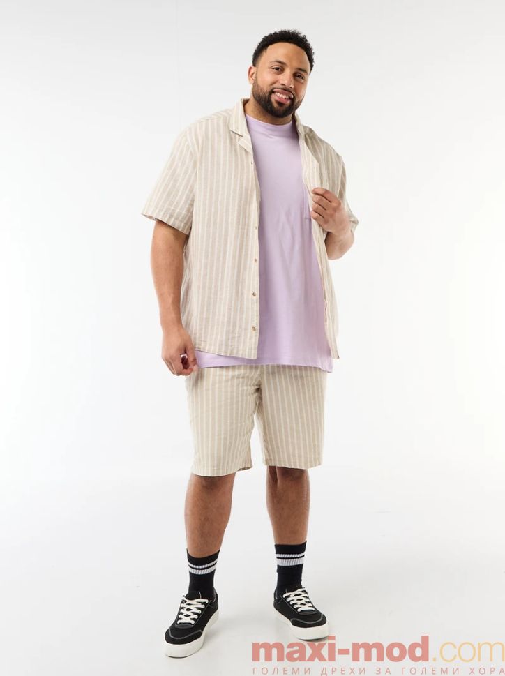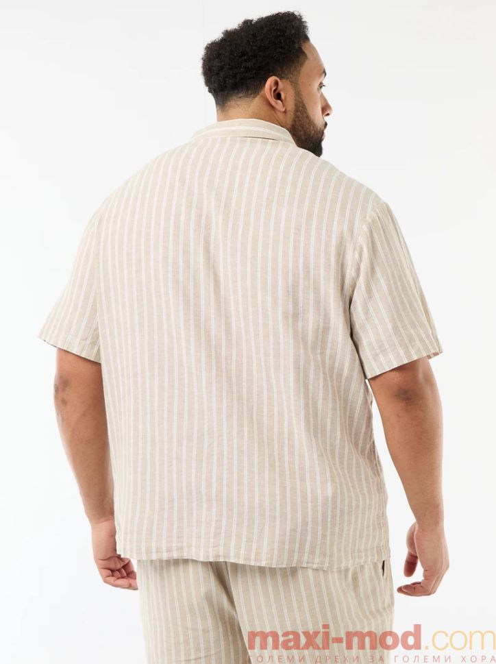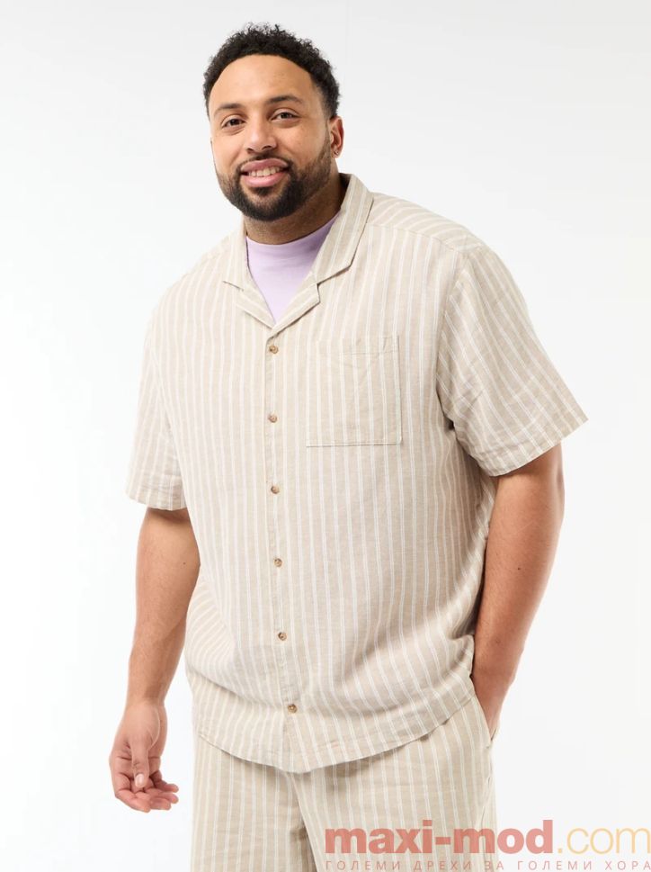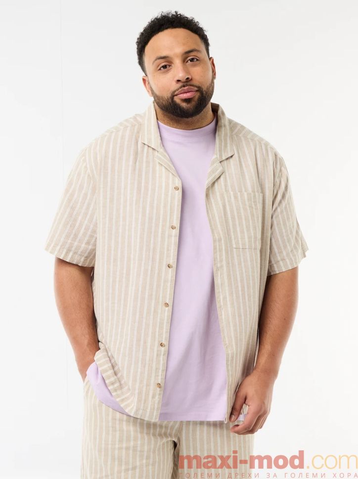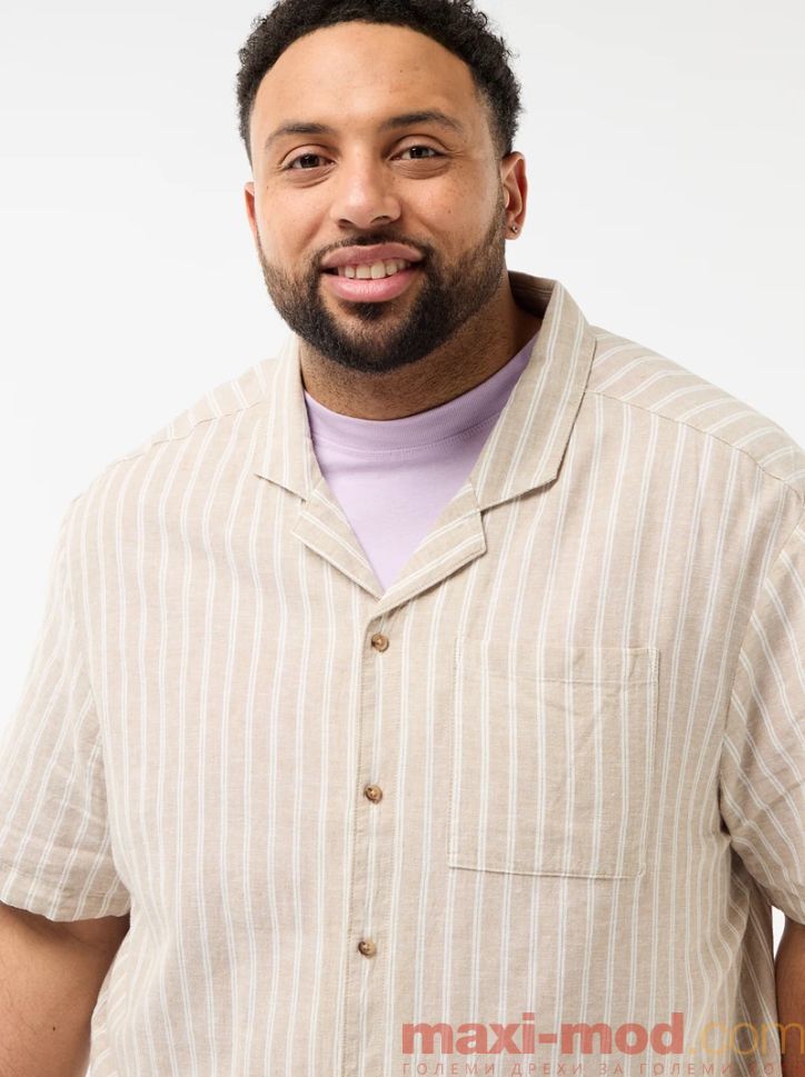 Мъжка ленена риза с къс ръкав макси размер. Подходяща за ежедневието и свободното време.