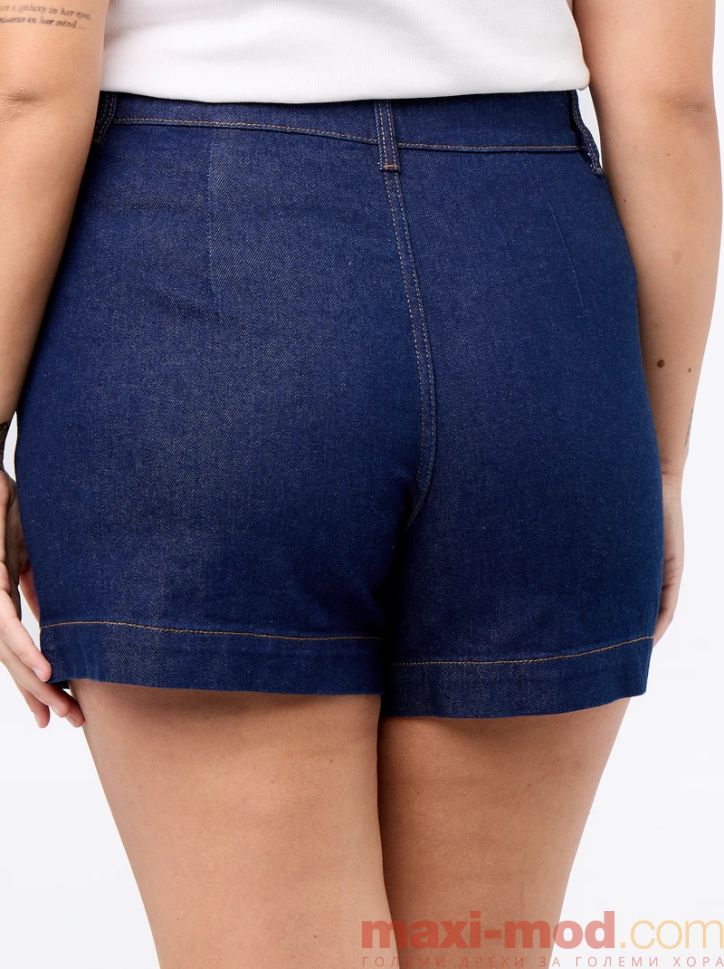 Къси дамски дънки с висока талияДънкови шорти с плетени джобове